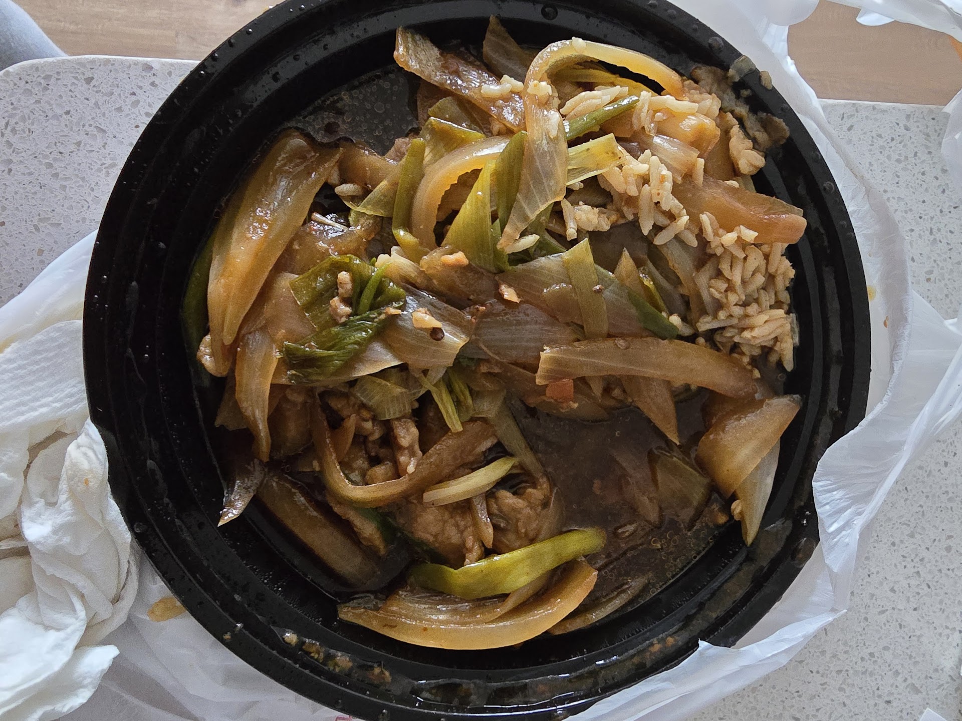 Combination Mei Fun: 1.5/5. By far the most disappointing dish of the night. Absolutely bland, nothing but thin rice noodles and a little bit of meat (a few shrimp, and some chicken pieces and beef pieces). There was NO seasoning, no sauce, no veggies. NOTHING! I wasn’t interested in the curry Singapore Mei Fun so I opted for this one because it was highly rated. Big mistake. They should just advertise this dish as a container of unseasoned thin rice noodles. So disappointed in the lack of flavor and lack of veggies!! Where is the cabbage?? I don’t recommend this dish at all.