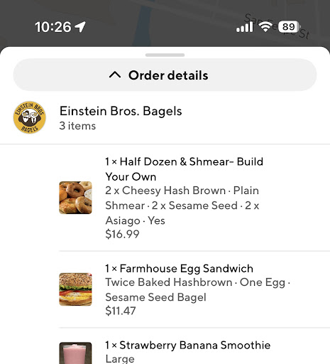 The second issue with my order was that they didn’t include the plain shmear that of course was added in my order but they didn’t care to include!