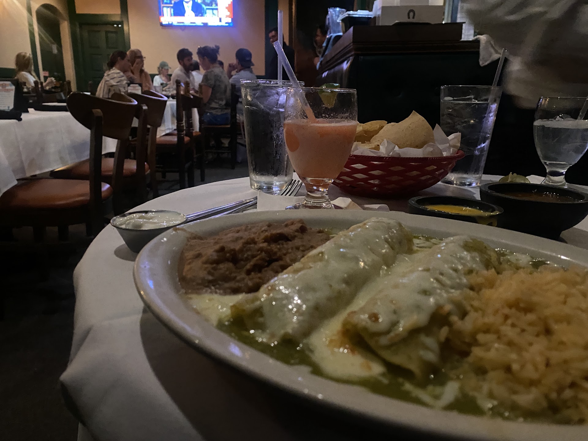 Read moreFood: Tex-Mex stylings with some level of Mexican food authenticity. Atmosphere-- is there such a thing as a too family friendly environment? My wife and I wanted an adult dinner for two; every table, other than ours, had at least two kids if not more! Also, it was slightly smoky-- just slightly. * Great place for a family, with kids, looking for a texmex experience. I had 5 street tacos-- al pastor; the charro beans were good, the rice was good and the tacos were pretty good. Chips and salsa were fine as well. My food is where I experienced some authenticity in the flavors. My wife-- she had an inauthentic plate of food. Her queso was more like melted Kraft singles. Her meat in her tacos al carbon-- not seasoned. She claims it was the worst Mexican food she ever had. She's as Caucasian as you get -- I'm very Americanized but all four of my grandparents are Mexicano and of course my parents. So for a white girl to not like it and say it was bad Mexican food... Let's just say the food is very much so catering to its crowd-- and I think I was the only Mexicano there besides the employees! This was a Friday night. It look like the owner came out and played a pretty typical common Mexican song on the guitar with another person who seem like a legit mariachi. The kids had balloon animals. And this was 7:00 p.m. on a Friday night. Value-- prices for lunch look great-- dinner seems to be around El Tiempo pricing. Parking-- was peculiar. The parking lot was full and they do have free valet. Our service was great-- the waiter actually listened and took to heart what I expected from the food-- I ordered...