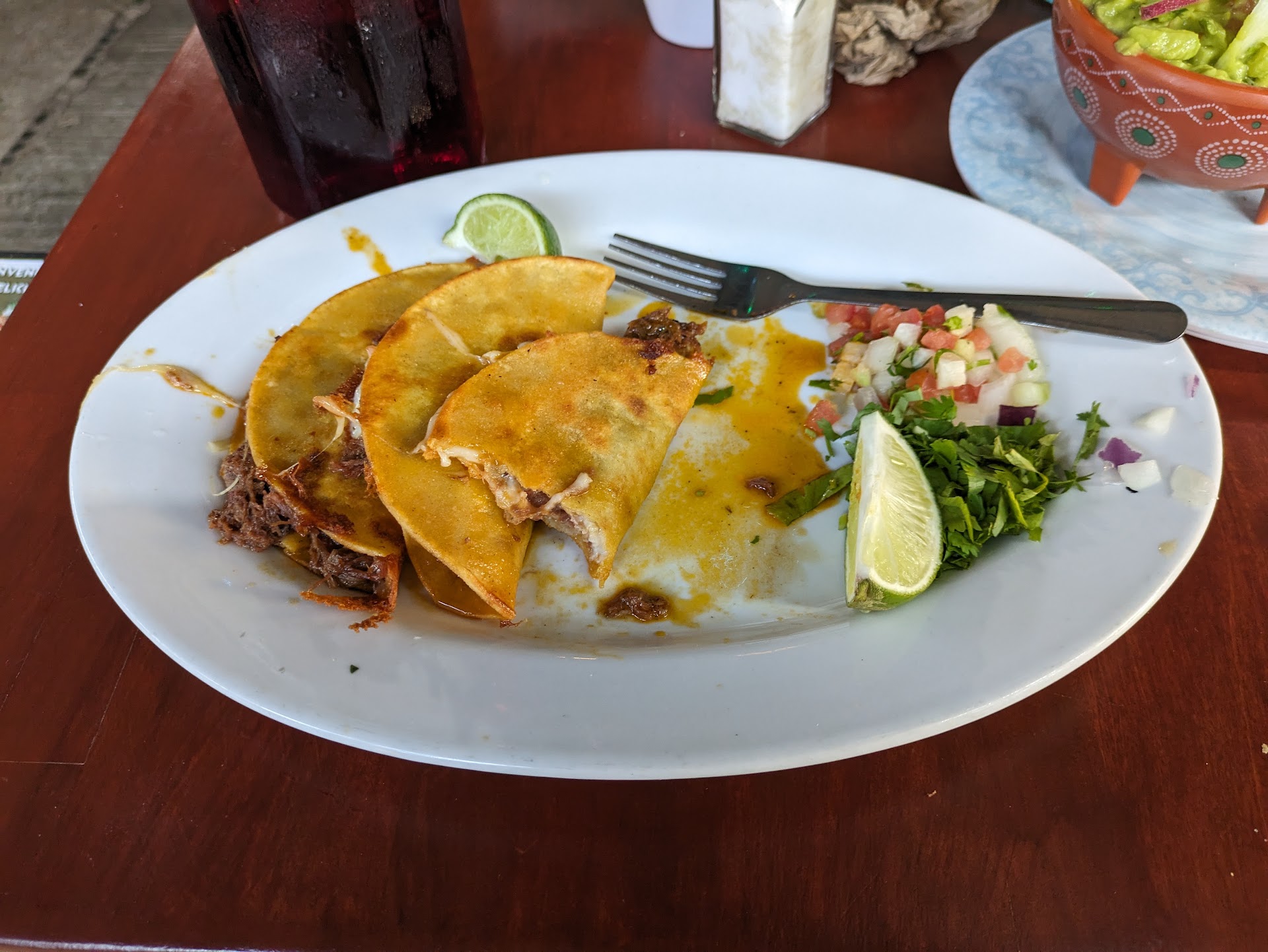 Food: Okay, here's where things went downhill. It took us TWO hours to get our food. For a place that serves street food, this is totally unacceptable. It's not like we were dining at a fancy restaurant. We kept checking with our waiter, who kept apologizing for the wait. She said, "I am so sorry, but there are still people outside waiting for their food." Now, let's talk about the actual food. We ordered the machete, 5 tacos, quesadilla plate with rice, and the shrimp tacos. They were all tasty, but honestly, they weren't worth the nearly two-hour wait for such basic dishes.