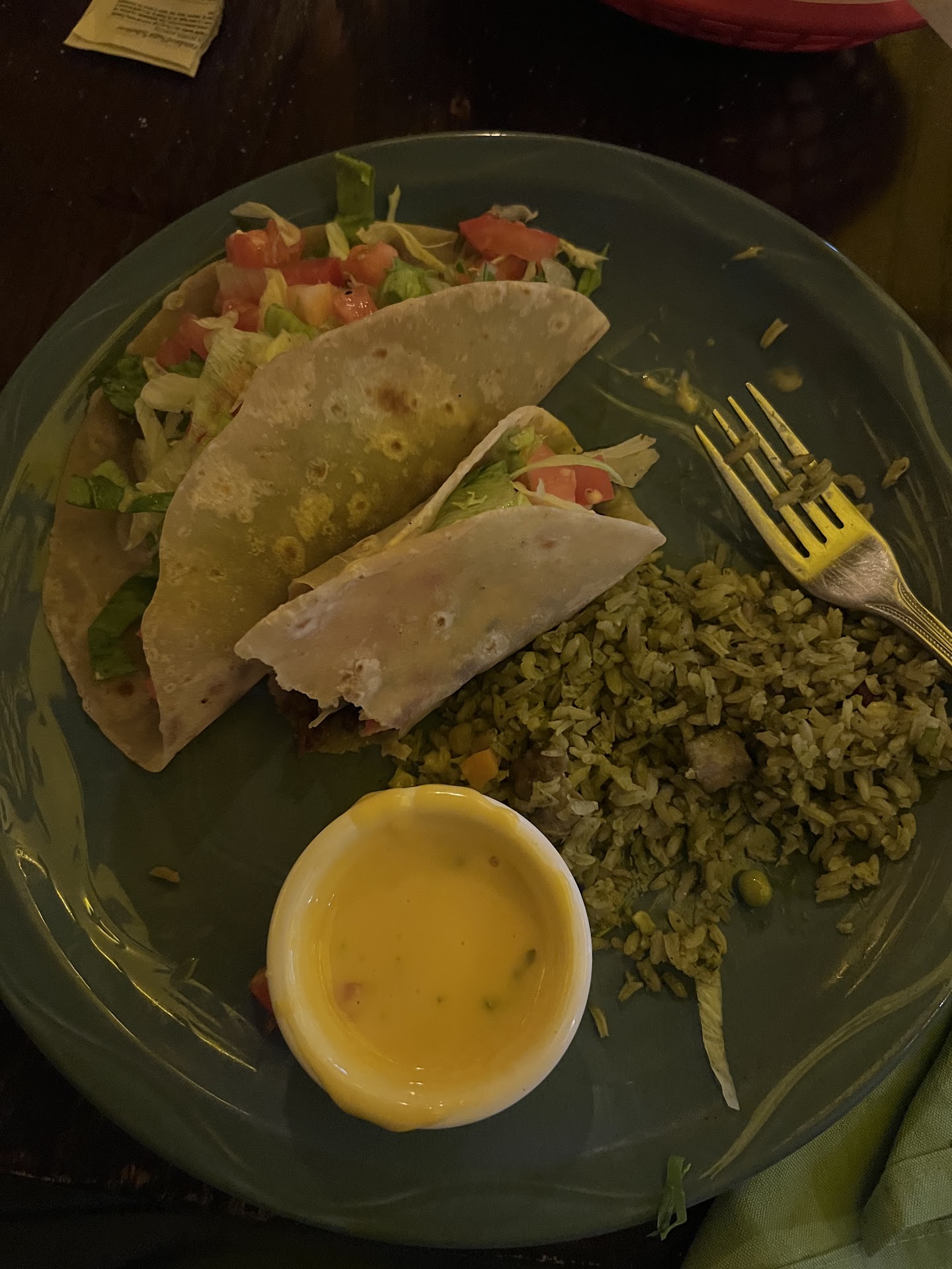 Last night we went by for drinks, queso, and got dinner Togo. Well, the drinks were great. The hostess was amazing. The queso tasted great. Problem comes in with the Togo order - no tortillas for fajitas or carnitas. Then we tried the enchiladas - the cheese on one was burnt (not the light char that should be there), there was almost no sauce on it (I only know there was sauce because of the chunks of Textured Vegetable Protein from their Texas Red Chili), and the tortillas on all of the enchiladas were undercooked. The Texas Red Chili tasted awful on the enchiladas and left we wanting to know what was wrong with enchilada sauce? The carnitas came out as old school when they should have been new school, though the hostess got this fixed for us.
