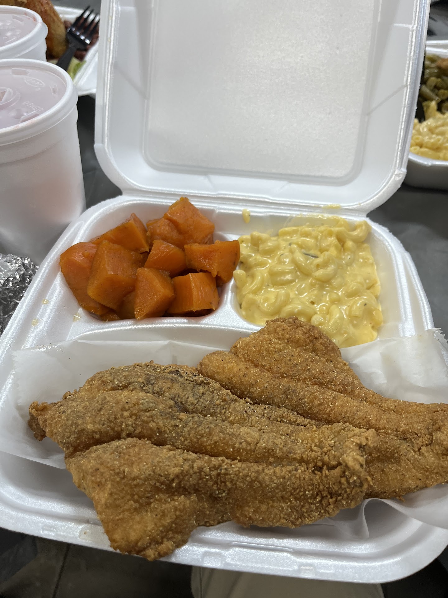 I found this restaurant while googling restaurants near me while my daughter was getting her hair done. Elmer's Bits & Pieces had great reviews, so I had to try them. I have to say as a first time customer, I was very happy with the customer service and food. I ordered the catfish and shrimp dinner with yams and macaroni. 2 large catfish and 8 shrimp along with a piece of cornbread came with meal. Price was very reasonable as it was $21.50. My stylist ordered the catfish dinner with yams and macaroni and 1 piece of cornbread came with it also. That was $16.50. The red koolaid hit the spot. There was no banana pudding available today but I heard it is a favorite as the reviews also reflected. Hopefully next time I come in, I will be able to get it. I could not eat all my food per the fish and shrimp dinner. I shared with daughter but still have leftovers. I'm sleepy now. Overall, the food was great. The macaroni is not your traditional macaroni but it is pretty good. I love the shrimp, yams, and fish was seasoned very well. I was too full to try cornbread. You wont be...