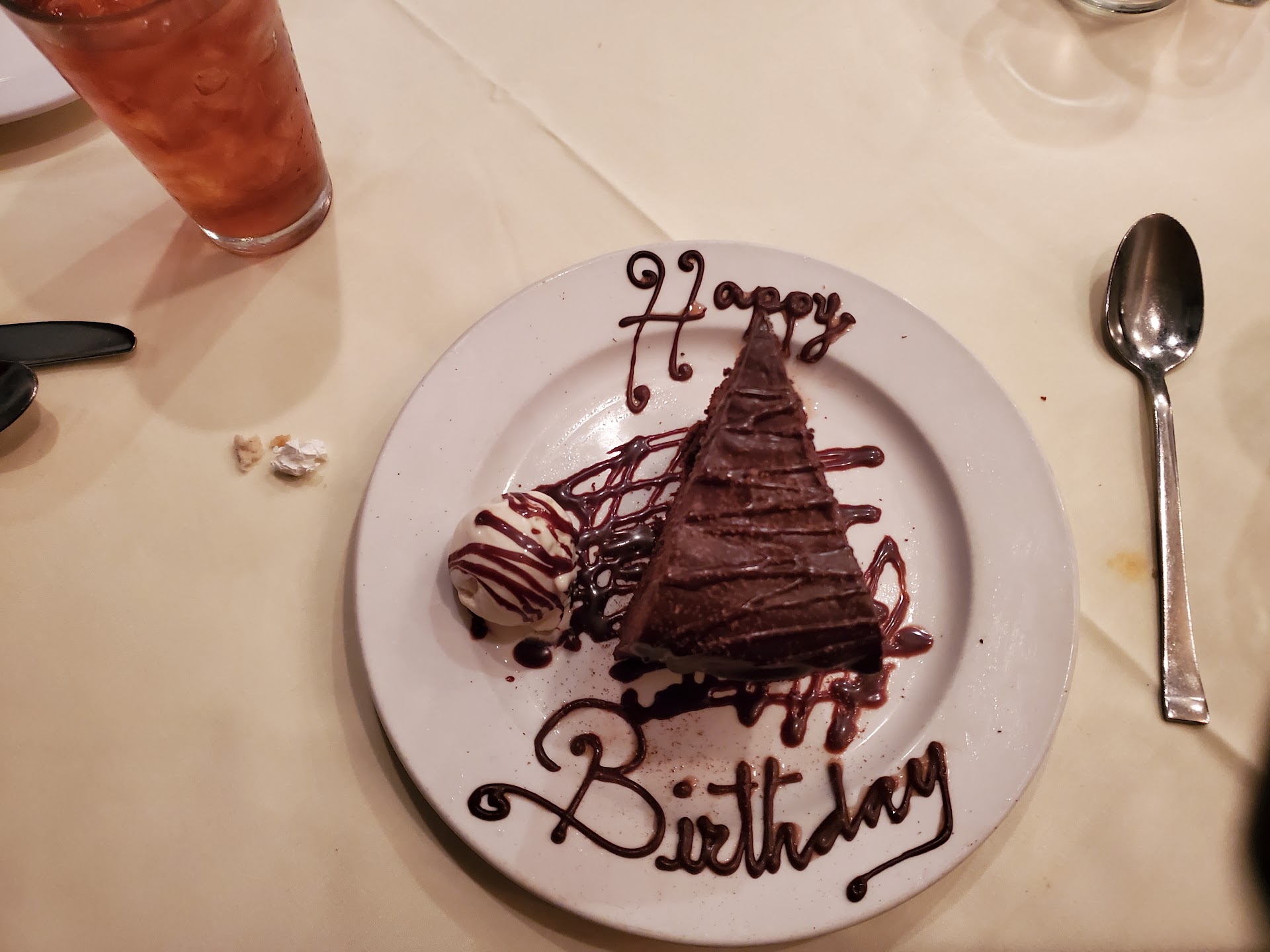 Our waiter was amicable and short, but we noticed she was very personable to the regulars.... Talked it up to the table next to us and the dessert menu was loudly proclaimed (we just got the written menu handed to us).