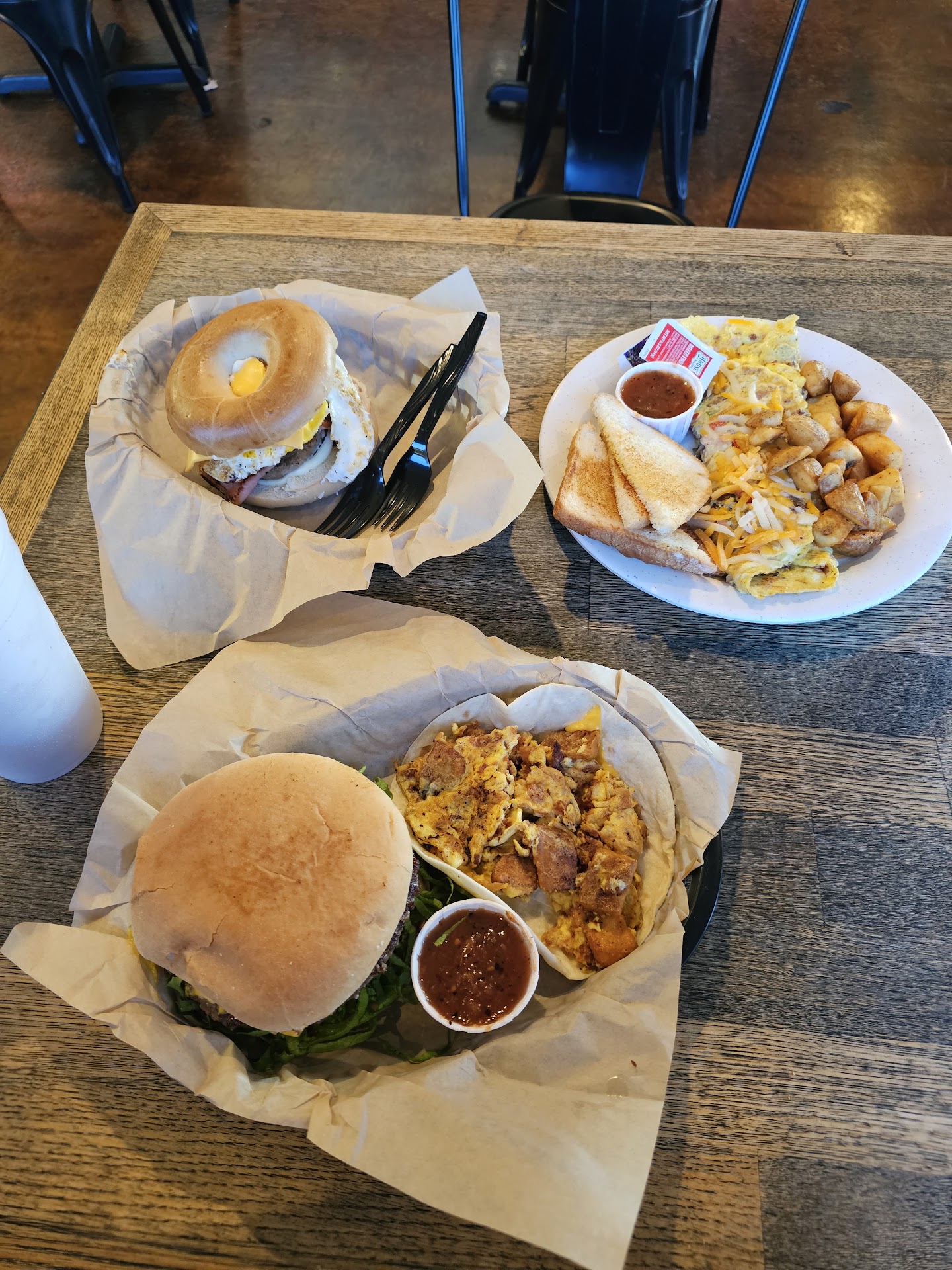 The 3 meat taco was absolutely inedible! Well at least to my taste. The taco itself was overwhelmingly mushy! Literally everything was over scrambled and looks unappetizing! The tortillas was soggy and couldn’t even be lifted up. Had to use a fork to cut into it. Ate a few bites and gave up. The taco was very under seasoned and yeah. Bleh. Not my flavor. I really didn’t enjoy my breakfast at all. So probably would never...