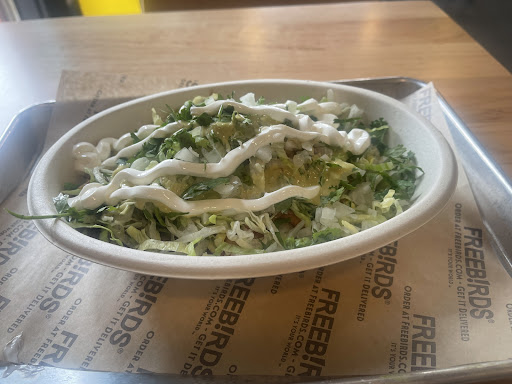 Read moreI have always liked Freebirds and the one near Bunker Hill close to the Academy has always been a fave of mine, until today that is... I never realized how difficult and costly it must be to offer avocado until today. Yes, whenever you ask for avocado you always get the plaintive..."guacamole or avocado?" because it is easier to squeeze on some average guacamole than to make a couple of slices in an avocado and scoop it out. Probably save 2 to 3 seconds with the guac. Today though the service was truly over the top in terms of BAD. You get one-half of an avocado when you ask for it which is plenty if you get all of it. I answered, "avocado" and the young man who was serving me my very difficult order of a - veggie burrito bowl - began to slice the avocado. The bearded ass next to him (mgr. I think) starts taking the bowl away before he has one slice of avocado in the bowl; trying to rush the server. Then after jerking the bowl from him three times the server finally gives up and throws half of my half avocado away so the ass manager will be happy. I end up with about two teaspoons of avocado. Then the ass starts stuffing things into the bag as my order is to go. Unaware to me he has knocked the top off the bowl in the bag. Then stuffs my chips and salsa bag into the bowl with a napkin. Yes, into the bowl as the lid is not on the bowl thanks to the ass. Yes, the same paper bag that was on the nasty counter. The good news was that when I got back to the office I really did not have to eat any of it as the chips were made a week ago and are stale, ice cold and greasy. Truly a bad experience at a place I have always enjoyed going to. I will not go back. They need to retrain...