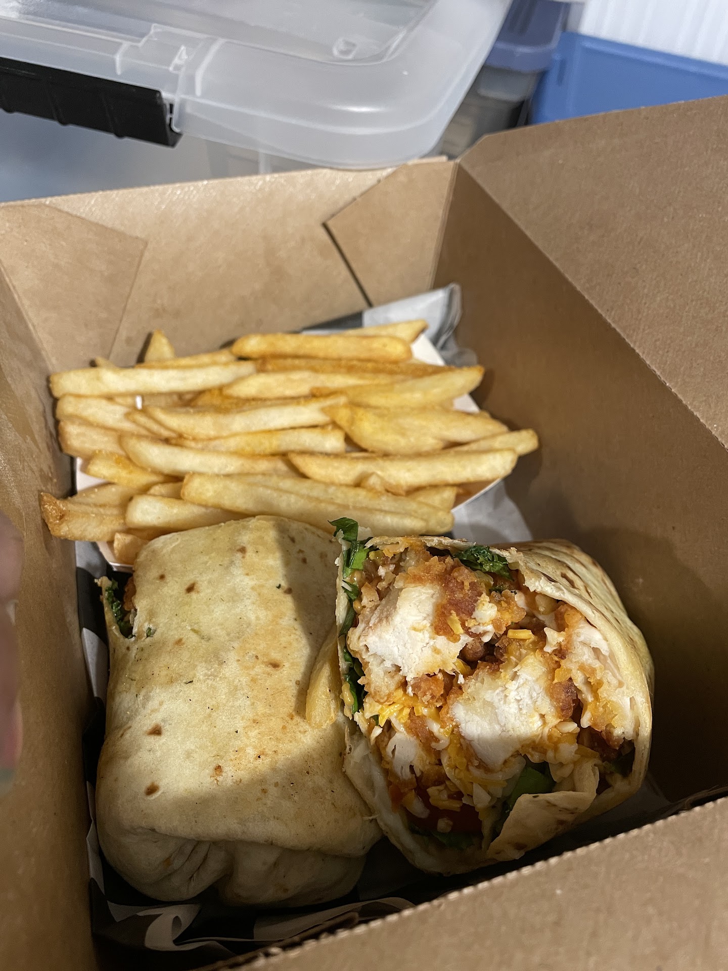 The weekday specials are the best kept secret. It's the freshness for me. It's the flavorsss for me. The chicken wrap special is offered in more than one sauce flavor but I only get the buffalo sauce cause one bite and I was sold. It's chopped chicken tenders tossed in your chosen sauce with lettuce and tomatoes, and pressed on the grill. The fries are served hot and seasoned and I love a well seasoned fry. And given the nature of the cafe, it is always served fresh off the grill/fryer.
