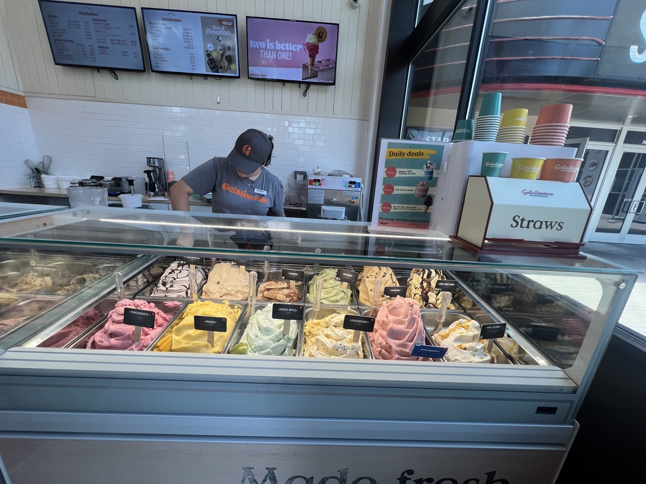 Read moreThe best artisanal gelato in town. They make their gelato/sorbet and cones fresh in store. Gelato and sorbet have no artificial colors or ingredients. Their sorbet are rich and creamy not icy or slushy. So many options and flavors to choose from. You can even taste as many flavors as you want before deciding which one you want to walk out of the store with. Can't just have one flavor. I love my Choc Mint and Pistachio combo. Sometimes I go with the Amarena paired Chunky New York Cheesecake. Oh, don't forget the mango sorbet, it is to die for, like eating fresh riped mango. Pair the mango with the Reduced Sugar Strawberry sorbet (like eating a handful of strawberries) a match made in heaven. They have pints and gelato cake too. This place is a must visit if you are in the area or want to make Baybrook Mall a destination, go treat yourself to some amazing gelato. They are out on the lawn right next to Star Cinema Grill Theater. Grab a movie then Gelatissimo gelato after. Or grab dinner at Maggianos, Perrys, Glorias Latin Cuisine, or Fogo de Choa then get Gelatissimo gelato...