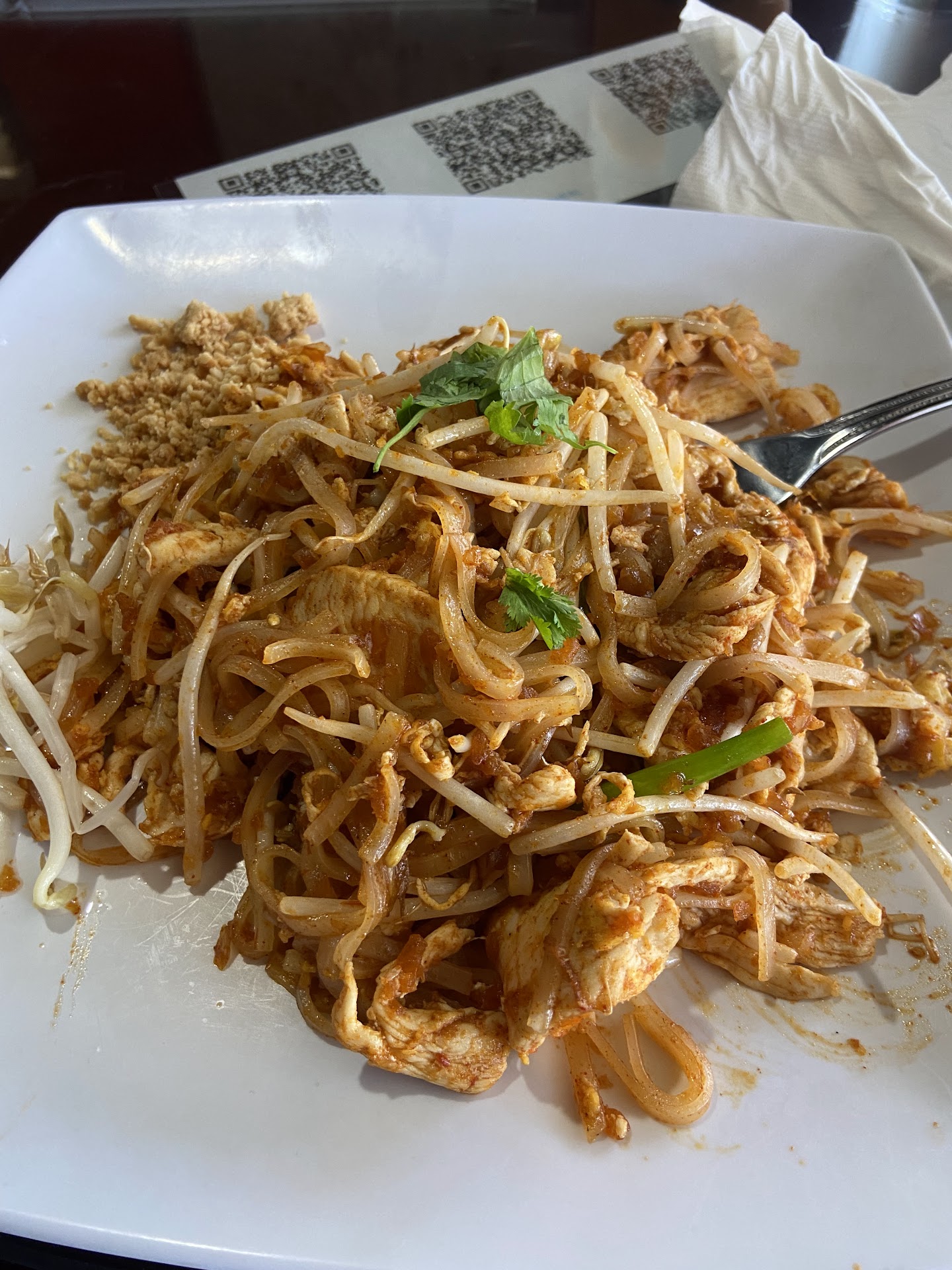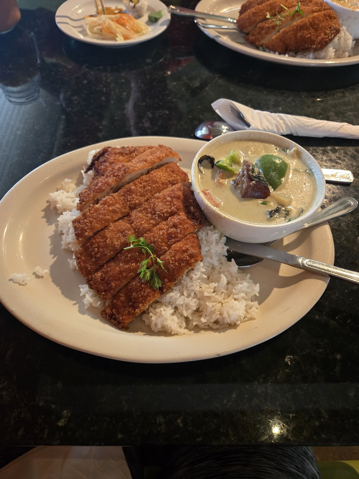 Parking is a cinch because of their private lot. Had I known this, I wouldn't have parked 2 blocks away at Lupe Tortilla. The prices are a bit steep, with lunch specials being around $11 or $12, but that's a small price to pay to get a more than decent Thai fix. I didn't mess with their sketchy sushi, and the curry was so good that I totally forgive them for weird hodgepodge of food. Just stay away from the sushi, and stick with the Thai food. You'll be "burning" for more before...