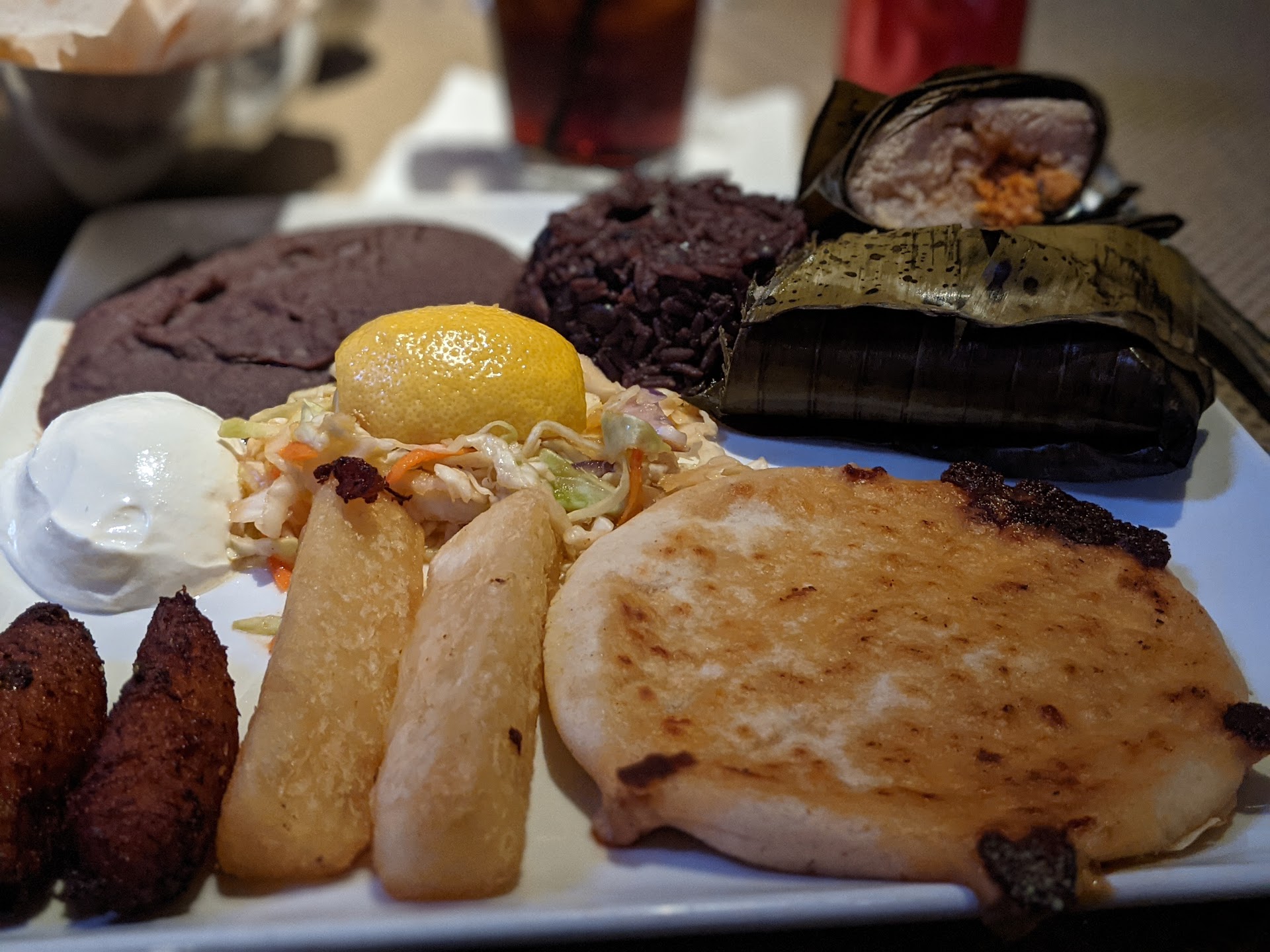 We were looking for a restaurant that had food and a (latin) dance floor and this was highly recommended by a few friends and friends of friends. Making reservations was quick and simple. I heard about this place from a friend who also mentioned the strict dress code. So, I asked about the dress code when making the reservations to which they replied, no jeans or tennis for the men and no tennis for the ladies. Sounded refreshing after being to so many places filled with booty shorts, sagging jeans, and flip-flops aka "slides". Arrival at the place was straight forward and fast, nice. Valet practically invaded our vehicle and motioned for us to surrender the vehicle....a little more "pushy" that what I would prefer, but ok. Inside, the atmosphere immediately makes a nice 1st impression. Then the new-ness fog clears and we begin to see it. There are people of all colors, shapes, and sizes....wearing shorts, tennis shoes, and jeans...men and women alike. The waiter was asked about this. Apparently, the dress code is for the dance/night club that the restaurant converts to after 10-ish pm. Oh ok, well, I guess that makes sense. I mean, that's why we were dressed up for, in anticipation of dancing the night away....after dinner. Food was GREAT! Never-ending chips and salsa & refried beans. The salsa had just the right amount of heat for the chips. The "Mar y Tierra" that I had was delicious. The steak was cooked just right, medium rare. The jumbo shrimp was just that, jumbo. The fried plantains were nice and juicy. The mexican rice was good, although nothing to write home about. Refried beans needed some more flavor. The sweet tea was also good. Waiter was very attentive....well, the one that I think was our waiter. There were a few that were taking care of our drinks and one that took our orders. Service was prompt and food came out fairly quickly for a Saturday night. Fast-forward to the conversion. All the tables were picked up and put away in the main dining room, clearing the dance floor. Interesting. While they were clearing the table, the DJ started to play a few tracks to get the crowd ready...and you could see it. The crowd was growing around the dance floor and they were just itching to get out there. Finally, everything was done and people were beginning to get out on the floor, dancing to salsa, merengue, cumbias, bachatas, and even some reggaeton. We enjoyed ourselves while this lasted. Then when the music changed up and the DJ started playing more club/house music. That's when we saw it. This really ruined the night for some in our group. There were more than not, people in jeans, shorts, yoga pants, tennis shoes, and even flip-flops. FLIP-FLOPS!! (aka slides). So much for the dress code.... This really ruined our night....I expected so much more class in this establishment. No class here, just a whole bunch of people looking like either they just came from the gym, rolled out of bed, or even wandered in tired from working the street corners. We might return again for the food. Not sure about the night life here yet....we might show up in jeans and tennis shoes next time and try our luck...we still might be over overdressed. Until...