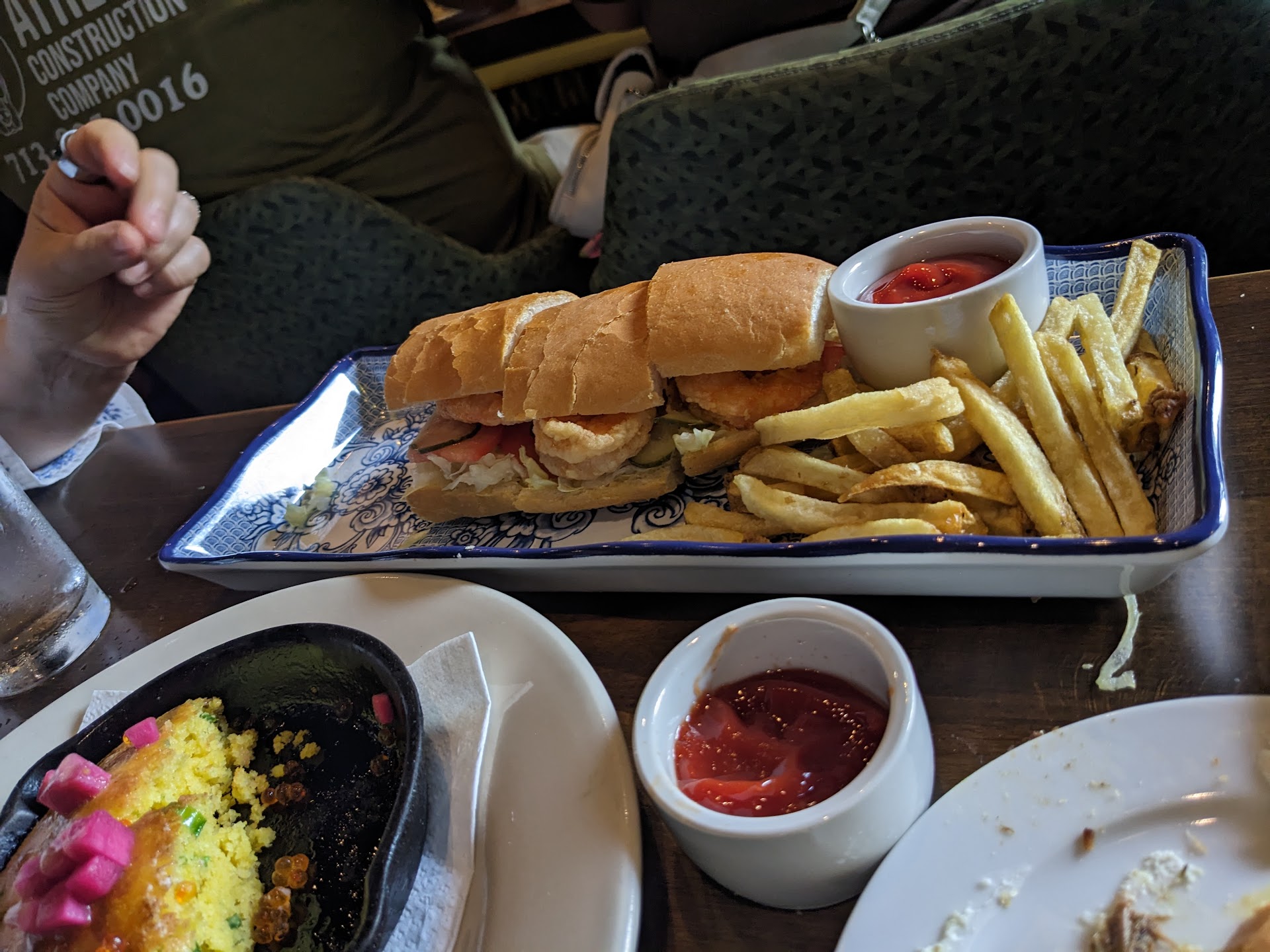 Was a little curious what tales the old Darwins Pub was going to tell with this new spot that opened up a few months ago. Great first date spot. We went for Houston Restaurant Weeks for $39 each. We were able to pretty much choose anything 1 item from each course on the menu. Great idea. We chose the cast iron corn bread. Damn good. The crab dip. I could order 4 of these. Would be nice to have with small toast bites instead of chips, but that may just be me. Shrimp poppy was amazing. The bread was soft and pillowy. And for dessert, the boozy tiramisu. And when I say boozy... its BOOZY!. bourbon I think. All in all had a fantastic meal here. Service was great. Donna was very polite and new the menu well. Made recs. Met the chef owner Kyle... solid dude. Will definitely come back during the week for their HH burgers for $7! Wow! Ooooh I forgot the best part. The fries! They are fried in beef tallow. And they...