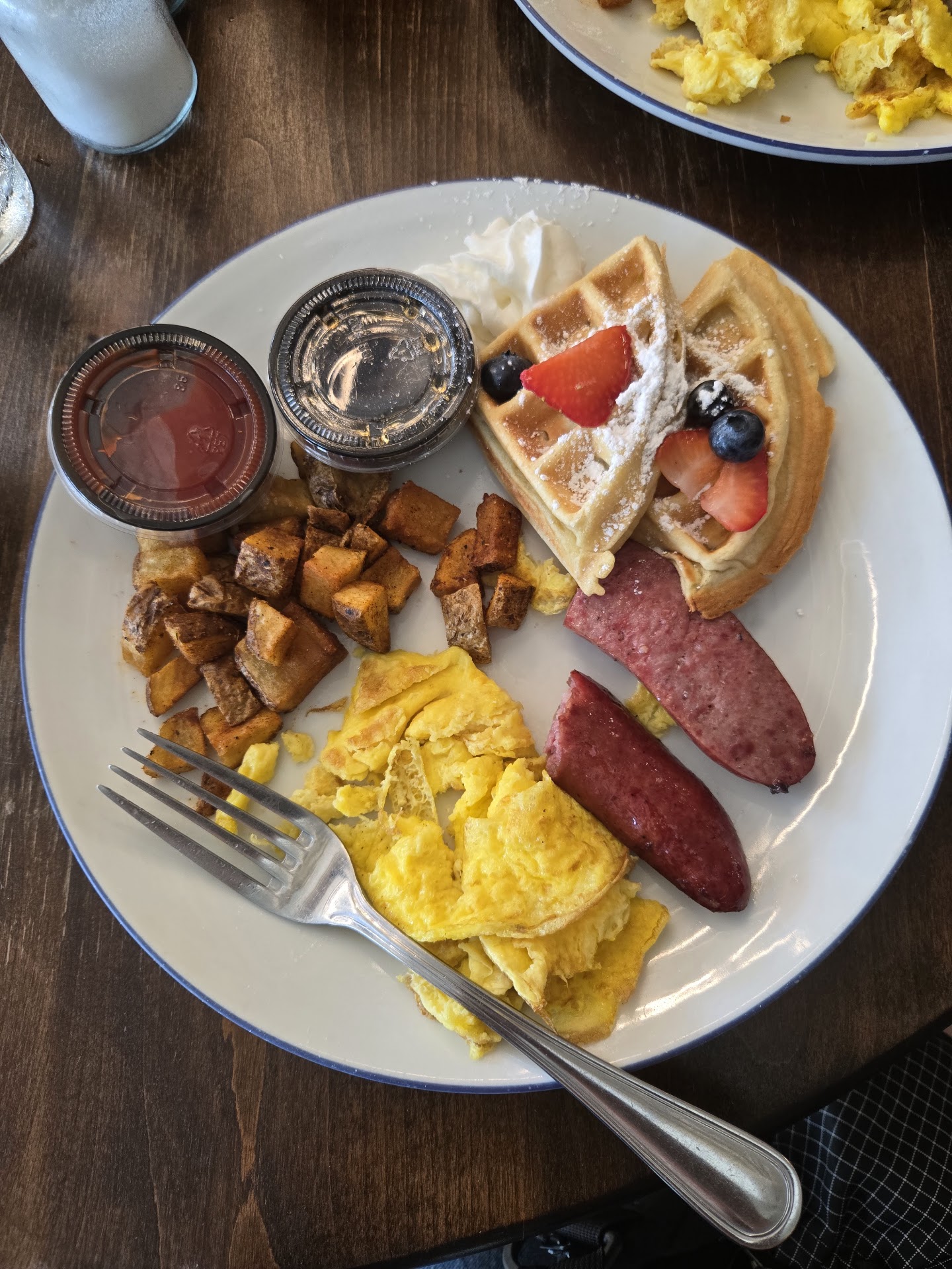Read moreSo my experience wasn’t that great. I waited to be severed when I first sat down, like over 10 minutes and I will mention it was not packed in the restaurant there were maybe 3 other tables in the place that had people sitting and one of those families were already eating. So I got up to ask if I need to order at the register, the stated he will take my order at a table. I order a Bellini and the farmers Breakfast with an added Waffle. Waited for my food to arrive and once it did the man had French toast on my plate. Disappointed by this I thought he would take the plate back and fix my 23$ order but no he asked me if it was okay if I just eat the French toast anyways since he clearly didn’t want to fix his mistake, I ate the plate as is. After I finished eating I wanted to just leave but yet again I had to get up to receive my check. I didn’t tip him at all since his service was half ass and inconsiderate. The food was good and despite me not ordering the French toast, it wasn’t that bad. But that’s not the point I wanted a waffle and I didn’t get what I ordered and I still had to pay for something that I did not order. I’ll probably never eat here ever again. Paid 30.31$