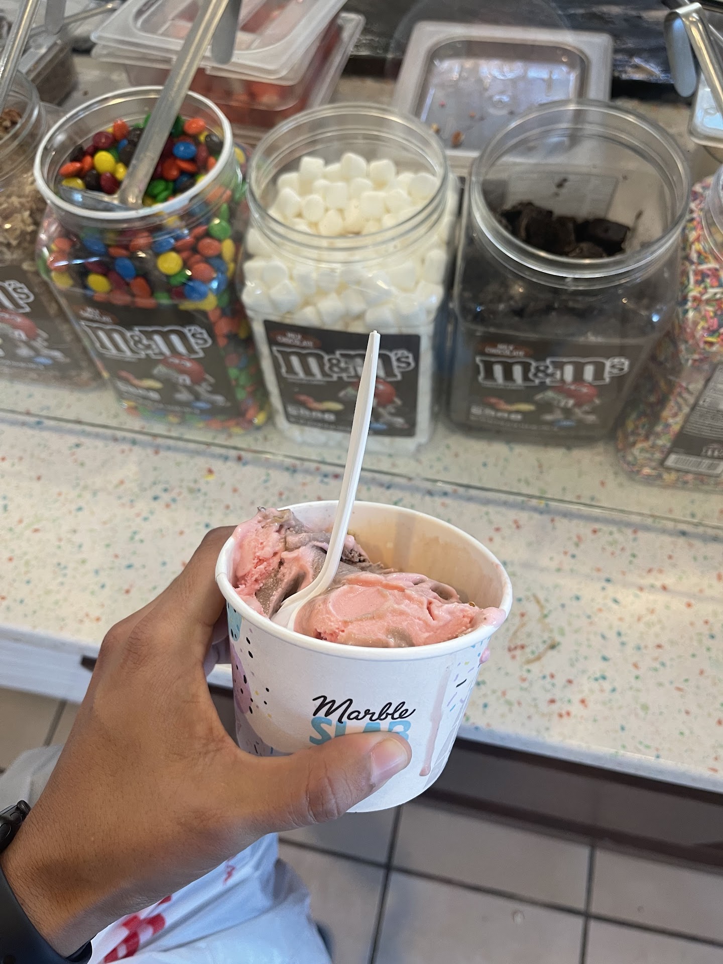 Read moreLast time I came here, there were 3 people behind the counter eating and they said they were all on lunch and were closed. Today, I come back (the nail salon I go to in right across from them) and there are three employees eating behind the counter. One asks what I need as she wipes food from her face. No gloves, doesnât even wash her hands. I tell her the ice cream I choose and that she can give us half the portion so it doesnât spill over and she says with an attitude, âitâs the same price if you get all of it or notâ. I told her it was fine and explained my reasoning. The other girl behind the counter eating her fruit pops up to take my payment and asks if I need change (ummmm YES.) This place definitely needs some management and/or training. A deep cleaning wouldnât be a bad idea either. They should also have their employees wash there hands. Fingers and under nails were disgusting....