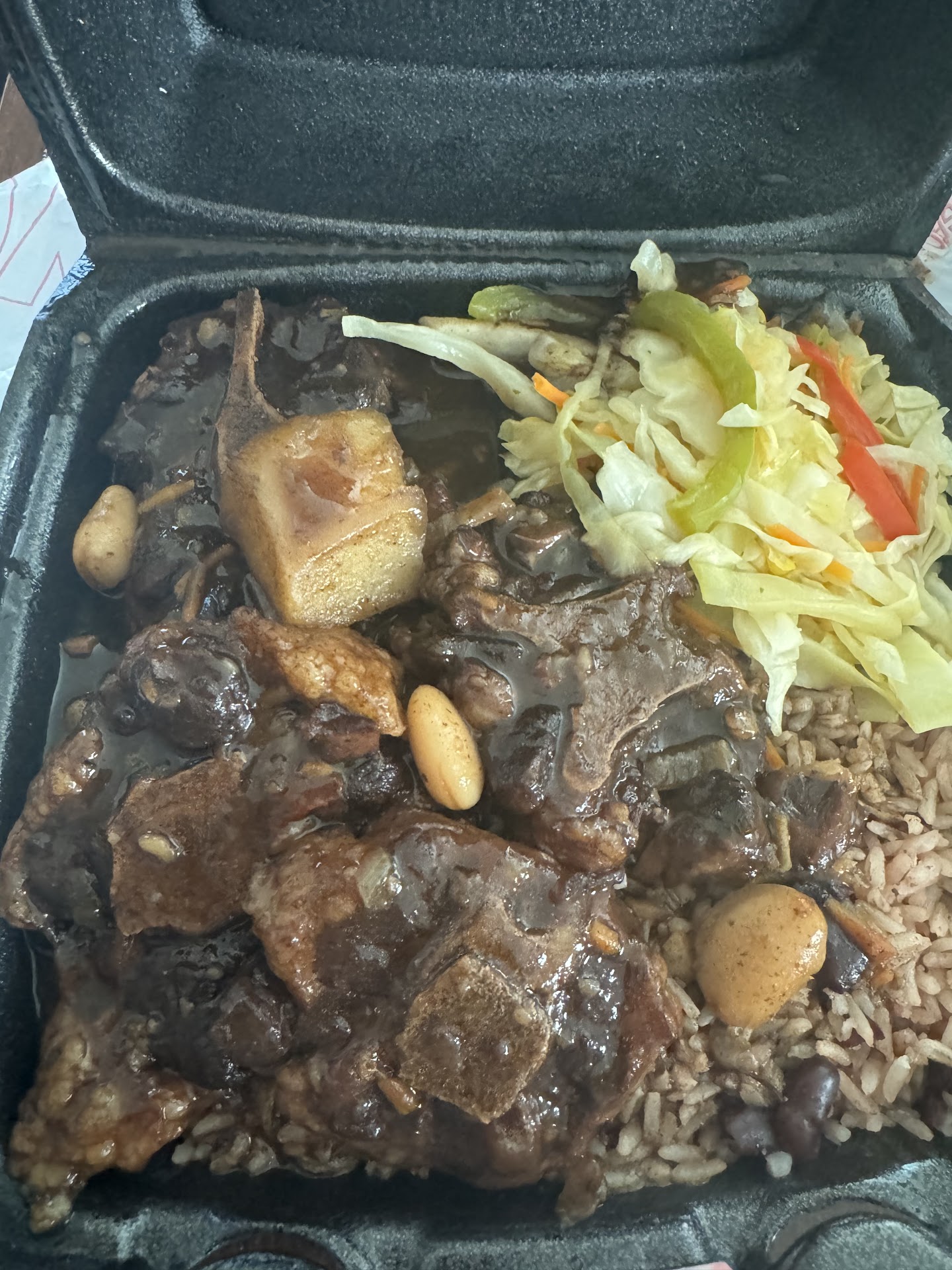 Read moreTried it for the first time today 10/5/24 and ordered 1 oxtail plate, and 1 goat curry plate, both with rice and peas and fried plantain. I called in my order in advance and said I was 20 mins away, The lady assured me it will be ready when I arrived.. I get there and the place and atmosphere was really nice. I was the only customer except for a couple dining in. Partially greeted by the lady I spoke to otp & ended up waiting awhile for my food even after being told itâll be ready when I arrived.. the lady said 5 mins & I still wanted a good 10 mins then was told itâll be 5 mins again a second time.. which to me is not right! Donât give me an expectation if it isnât at least somewhat accurate, just say âitâll be ready soonâ Anyway I get home to eat with my lady and we both agree that the meat was very skimped out on. I spent basically $50 for 2 plates just to mainly get rice and peas.. Iâm from the Virgin Islands and I can confidently say that this was not authentic Caribbean food. It wasnât down right nasty but itâs lacking the depth and true flavor of Caribbean curry and oxtail. Itâs like a salty but washed/watered down version to me. I feel I wasted my money and should have went to my usual place The Caribbean Hot Pot.
