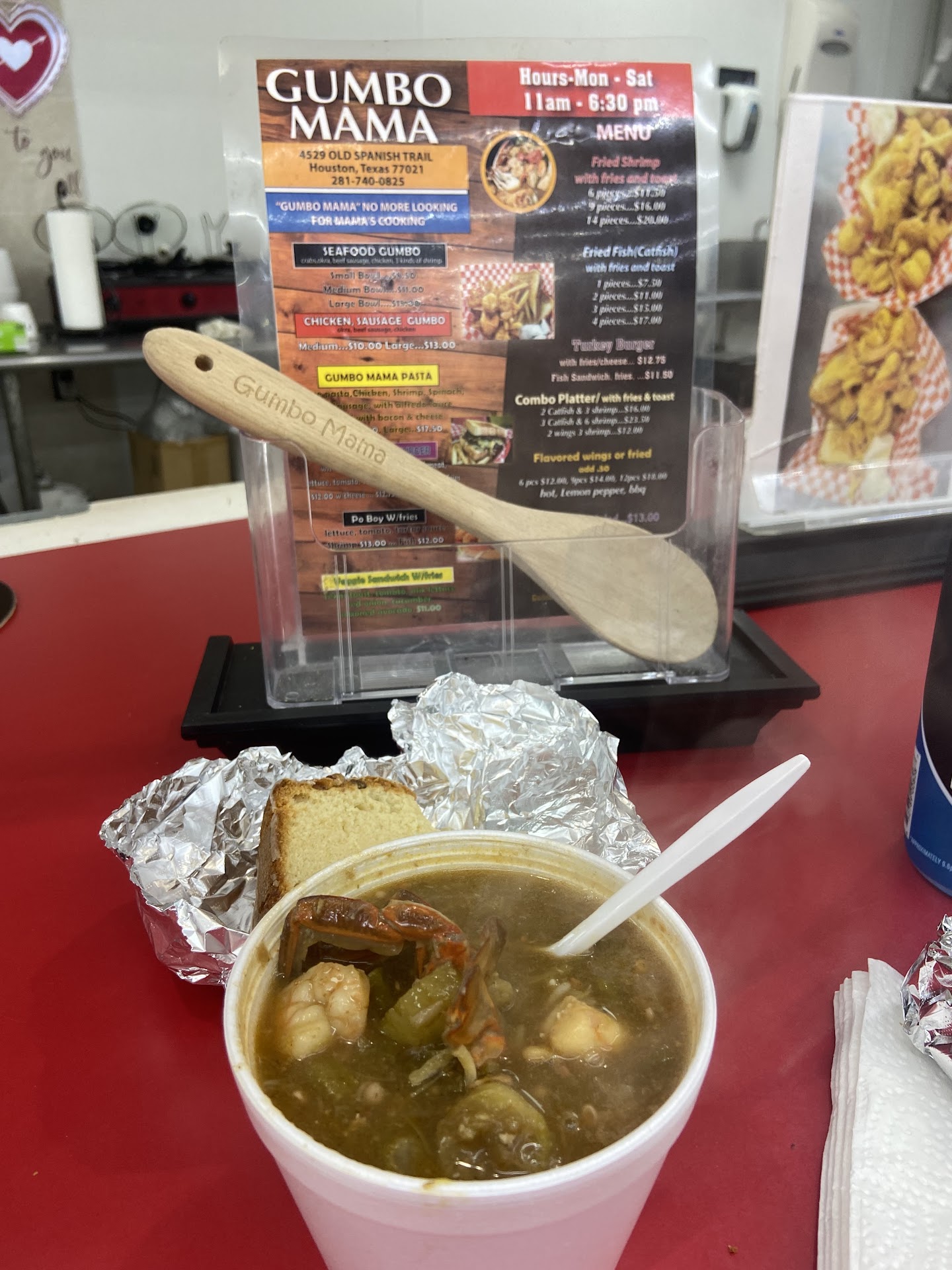 Ā Ā Ā Read moreI googled the best gumbo in Houston and Gumbo Mama was a favorite. I decided to give them a try, so happy I did. Mrs.Tina the owner greeted me with a warm welcoming smile before she took my order. She was very kind and wholesome, definitely makes you feel like youāre with family. I ordered the seafood gumbo, fried shrimp and catfish basket. Wait time wasnāt long and she even gifted me a slice of vanilla pound cake as a first time customer. The food was incredible. The gumbo was the best Iāve had. It was seasoned perfectly and had generous portions of seafood inside. The shrimps were large and crispy, fries and catfish were seasoned and flavorful. Even the toast included was buttered and tasty. I read on someoneās review that she makes her tarter sauce, Omg it was delicious. It was so good I dipped my fries in it š. The food was definitely made with love. I wouldāve posted pics but we ate all the food š. I will definitely be back to try her seafood pasta and some more gumbo. This is a great small...