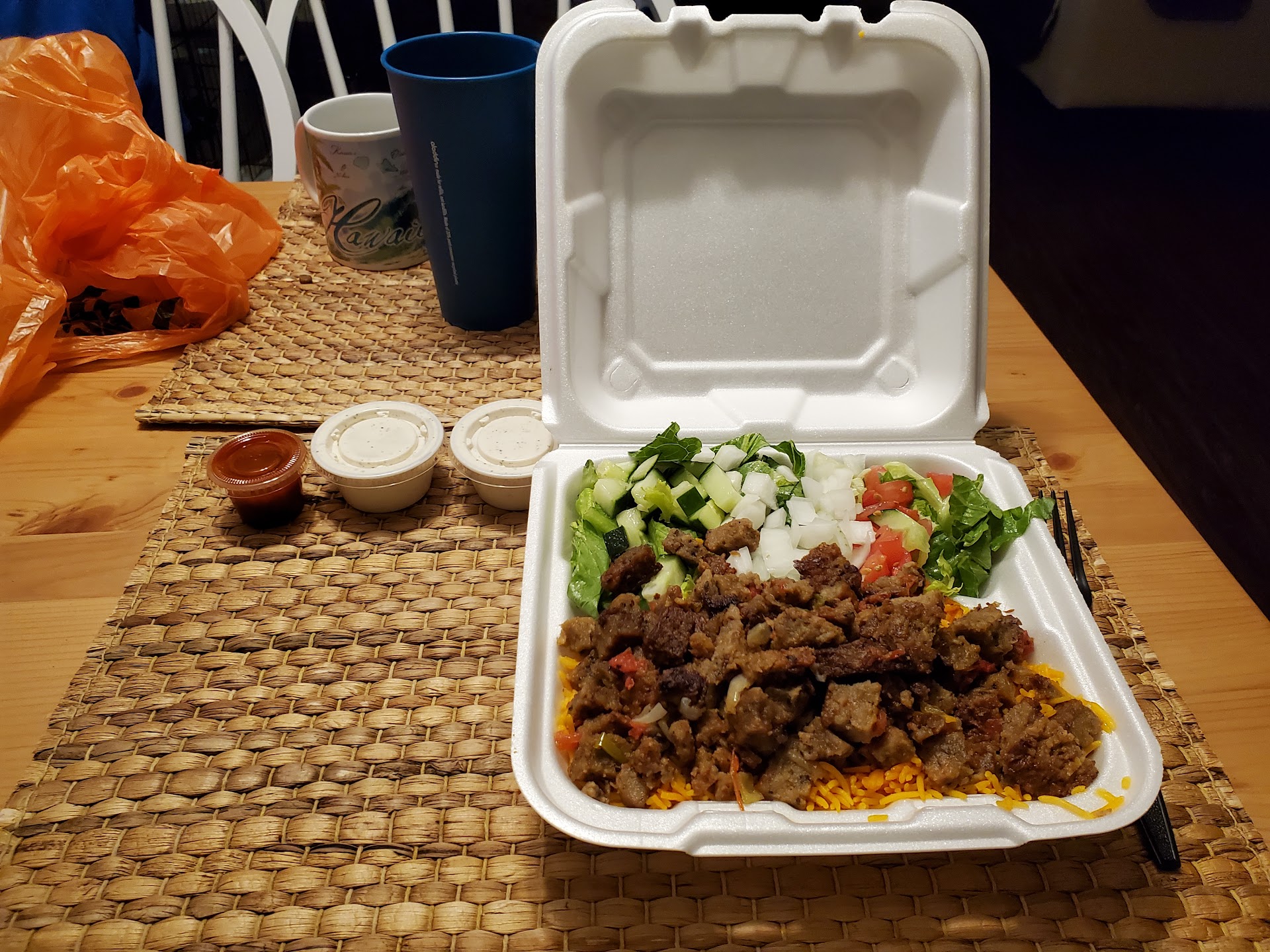 I got to try their falafel and their combo chicken/lamb over rice. Their falafel was good, not dry or crumbly like at a lot of places. Their lamb was good too. What really stood out to me was the chicken. It was red from their seasoning I think, so it was pretty flavorful, and it was actually moist! I can't tell you how many times I've been to a gyro place and gotten combo rice plate only to be picking the chicken out because it was too dry. This time my friends and I were digging for it lol.