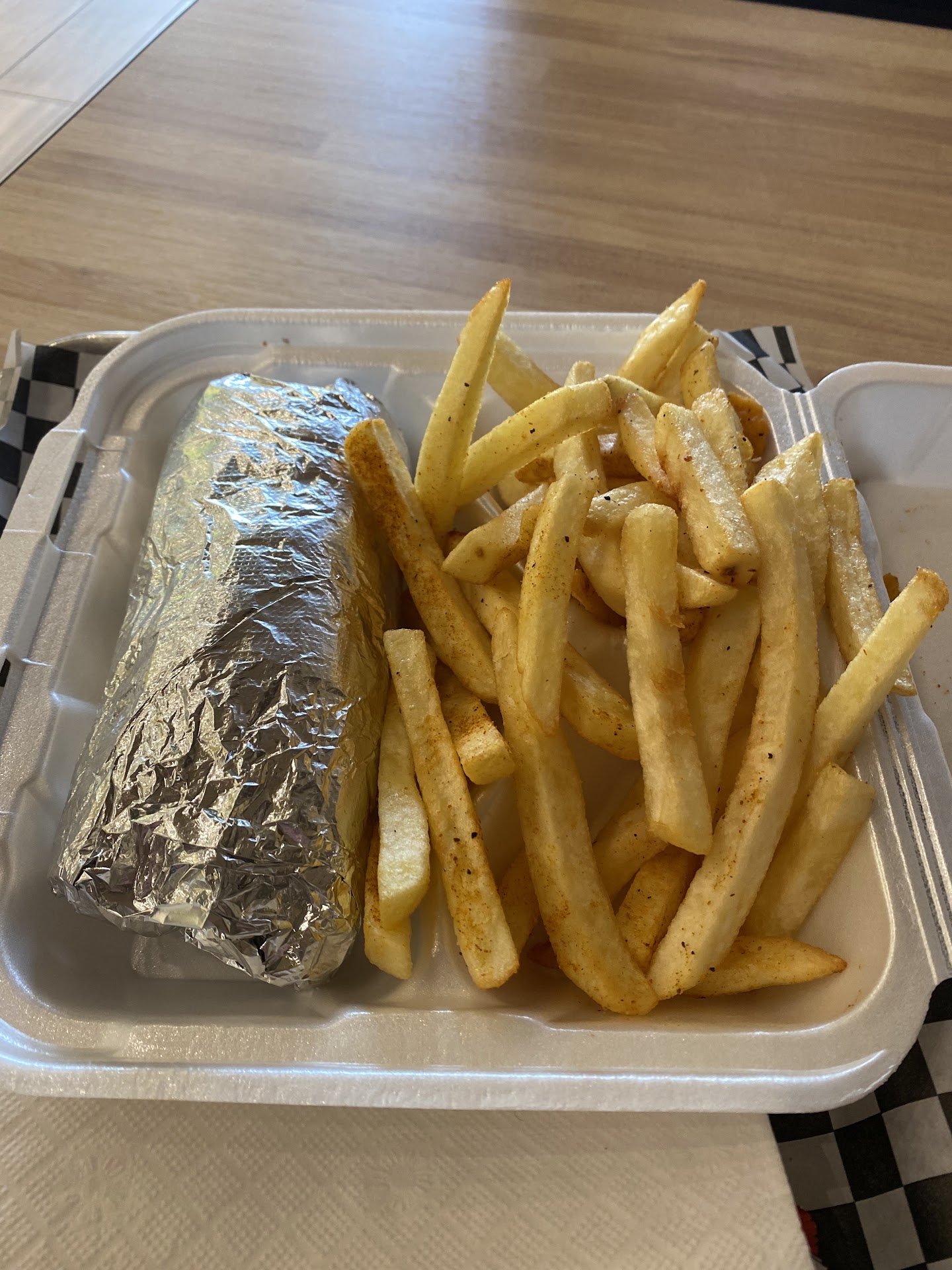 Read moreI have given this location 3 chances and today they continue to disappoint and we wont be back. We were the only customers this morning when they opened, the lone employee was on the phone taking an order. She said it would be just a few minutes as she was on the phone so we waited 21 minutes for her to get off the phone to take our order. After that it took an additional 23 minutes to receive our food. Yeah, I looked at my watch and compared it to the time stamp on the receipt. Our lamb gyros were like leather, the meat was not freshly cut from the rotisserie but pulled form a steam table that had held it for who knows how long and the meat was not even hot. The fries were cold, stone cold. I also ordered from falafel that were cold, rock hard and dry. The topping to this lack luster lunch was my experience going to the restroom to wash my hands only to be met with the other employee leaving the restroom and leaving behind a poop speckled toilet, I mean seriously destroyed as if he had explosive diarrhea. He had not even washed his hands and left this horrid mess and smell behind. SO can't trust this place with their service, food handling...