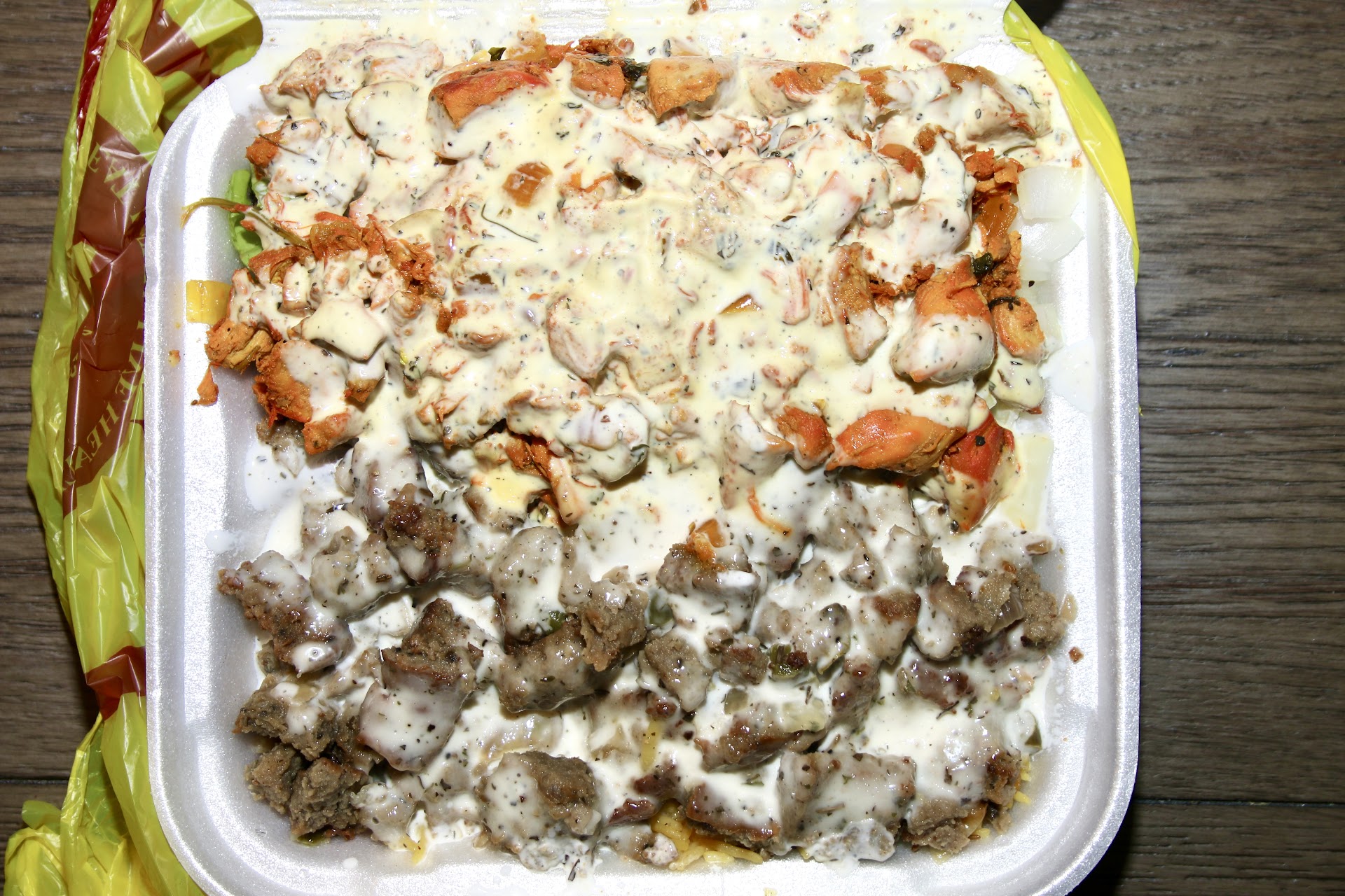 When I placed the order I asked the guy what all is on the chicken over rice bowl. He didn’t answer, so I listed 4 veggies (lettuce, onions, cucumbers and tomatoes) that I was able to read of the menu to confirm with him if that’s all the things that were in the bowl and he said yes. I told him I only wanted 3 of the 4 veggies, so no tomatoes.
