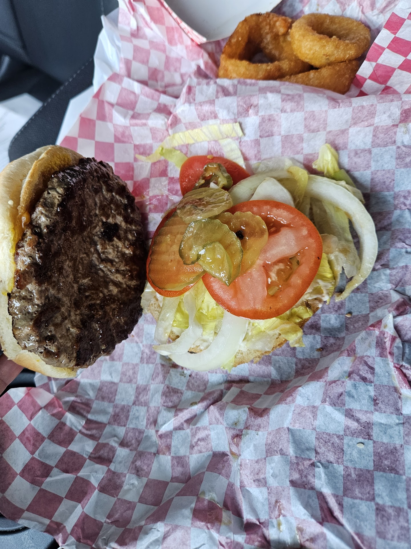 Read moreOk honestly I ended up here because I was nearby and hungry for a non fastfood burger, and they were open late. It's a bar, super nofrills. I got a bacon burger and onion rings. Burger was on point, just a good classic burger, you know how you eat a burger and you're like oh I instantly need to poop, this wasn't like that at all and I got onion rings which were delicious, like idk what kind of batter it was but it was light and tasty Anyway if you're hungry and in the area stop in, it's real low key, I watched a guy drink a beer and talk to himself while staring at me for an hour oh give it up for the bartender, tip her well,...