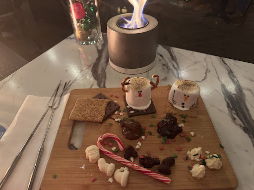 The food was pretty good. The fries were amazing—definitely a 10/10! However, getting ketchup took forever, and the staff seemed overwhelmed and overworked, which rubbed off on us. To end the night, we ordered the famous s’mores board, which was fun and delicious.