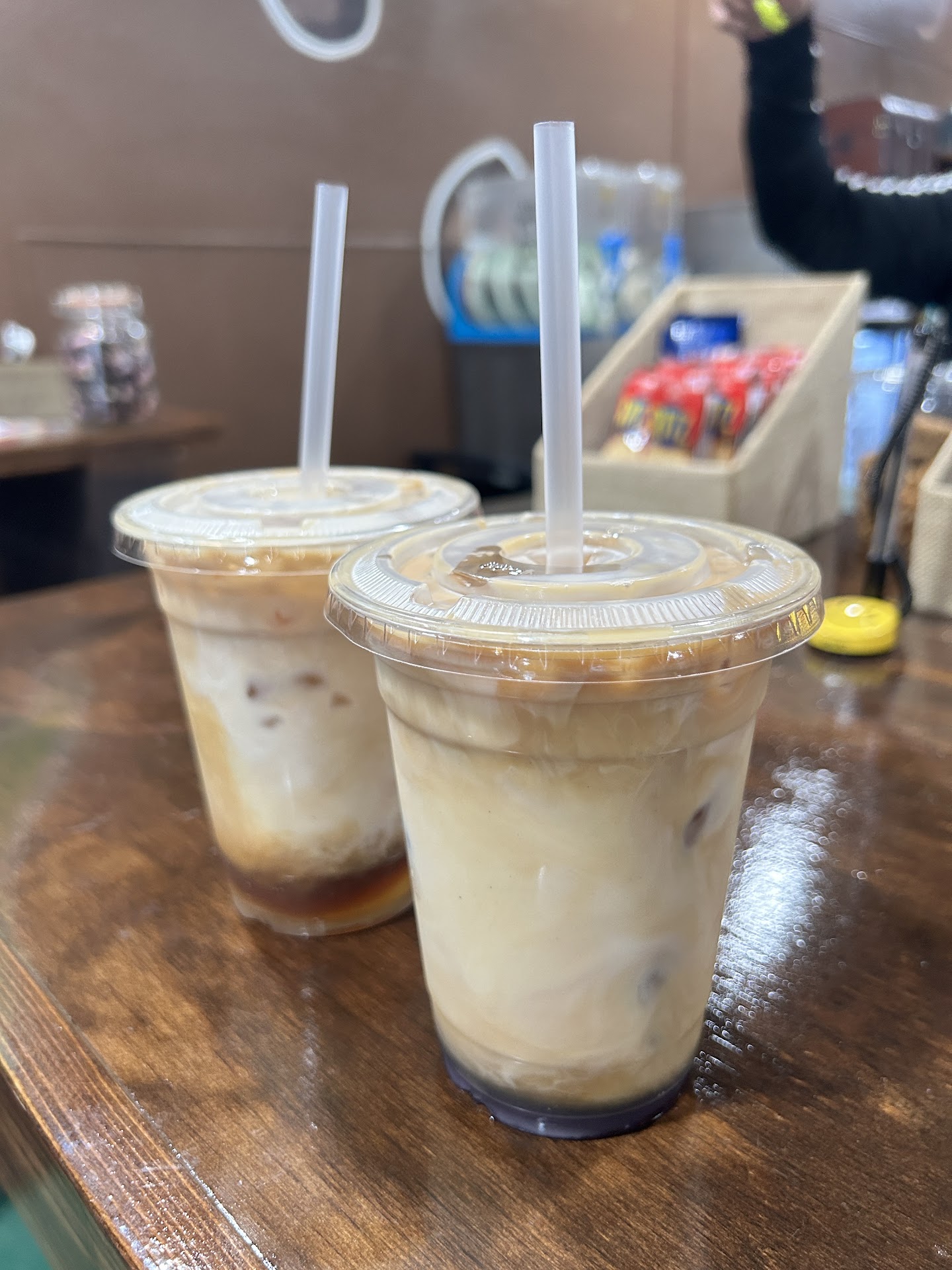 We tried a Tropical Island (coconut + lavender) latte and a Butter Pecan latte and they both tasted great! Both drinks run on the sweeter side, so if thatâs not your thing I would suggest just letting them know ahead of time.
