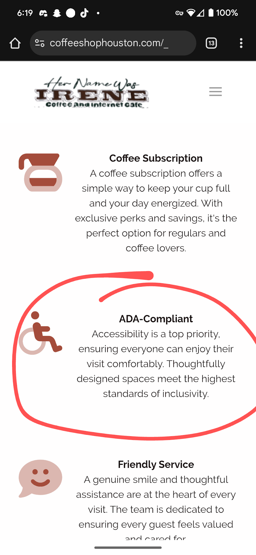 When I get lied to by companies about their compliance with inclusion of people with disabilities, it's usually something like a sketchy ramp or a small lip into their doorway.