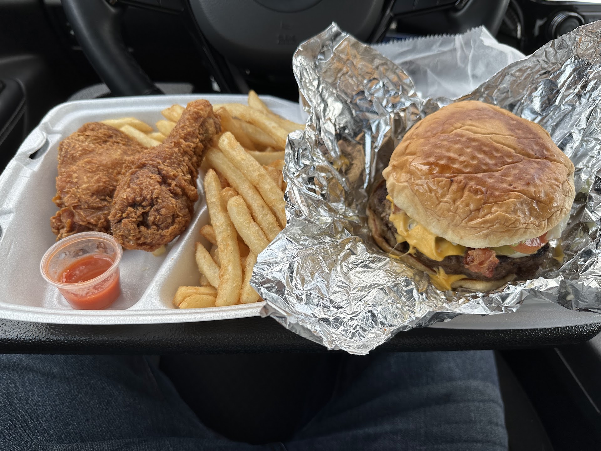 Read moreTucked away in a little gas station but it’s a nice place for your fast food cravings. The deluxe burger was gigantic just in case anyone wants to know the size of their burgers. Fried chicken was mid par. Fries were decent. Nothing wow’d me but I would probably still come back. Side note: keep your receipt because you’ll need to turn it in in order to...