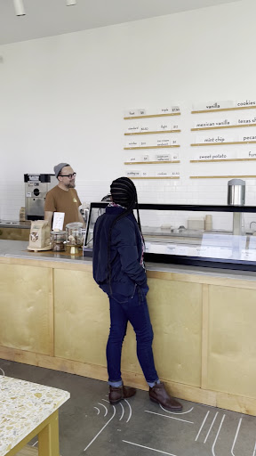 Going to Honeychilds Sweet Creams was the perfect stop to beat the heat of scorching Houston weather. Who would expect that in a little tiny ice cream shop would make there own ice cream, have a lending library and have uncommon flavors? On top of that, there were only two well mannered employees and they scooped the ice cream timely right before closing time so it didnât feel understaffed. The lending library was an unexpectedly pleasant surprise, and it was themed after progressive social topics that I agree with. There was a bar where you could eat your ice cream, and it had view of ice cream making room. The ice cream was tasty and fresh including apple butter sage and black berry basil and so was the waffle cone.