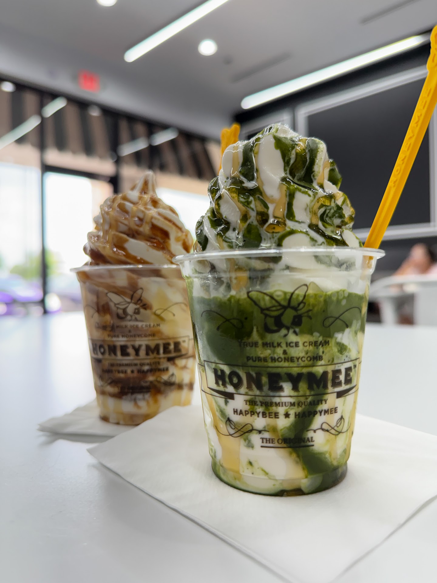 Went for their grand opening for the Buy 1 Free 1 deal. Was very crowded and they were very slow in serving the ice cream. Not sure if a machine was broken or if they were taking more orders than they could manage (more people were waiting for their order than to place their order). They were nice despite it being hectic, and even passed out free slices of cake to help with the 1+ hour long wait. It was sometimes difficult to hear your order number too over the loud country music (not sure why they were playing country music from Nashville?) so that added to the chaos. The ice cream itself was okay, nothing too crazy. Cool concept with the honeycomb topping but not worth the wait or price if there wasn't...