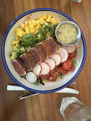 We started with the lobster mac & cheese, and it was next-levelāsuper creamy, cheesy, and the pasta was cooked just right. I ordered the French chicken, which came with this rich, flavorful sauce, a fresh Jack salad with vinaigrette, and some perfectly seasoned, thin-cut fries. My friend got the Hudson salad topped with chicken poppers and a drizzle of that same vinaigretteāso simple, but so good.