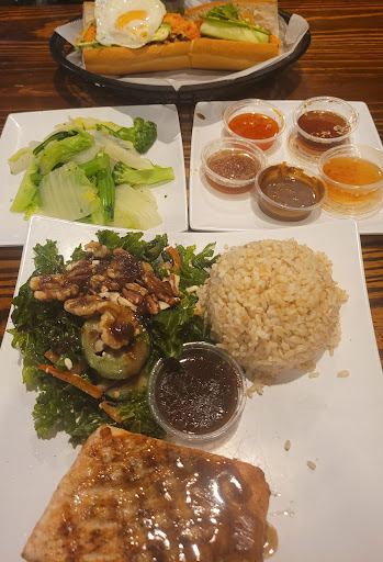 The cuisine is amazing It is unlike any Vietnamese food I have ever had. Every dish is tempting from the Shaking Chicken or Beef to their shrimp or salmon I usually have the grilled salmon, and it is always very fresh. It tastes perfect with the kale salad with their exquisite raspberry vinaigrette and dried cranberries . It is the best salad. My husband bounces around the menu, but often gets the banh mi (Vietnamese sandwich). Whatever we get, we ask for Hughies' variety of sauces: peanut, dumpling, sweet & sour and fish sauce They add to the savory flavor of our food. The ambiance is cozy and the service is always very helpful and professional. We have enjoyed both the 18th Street and Main...