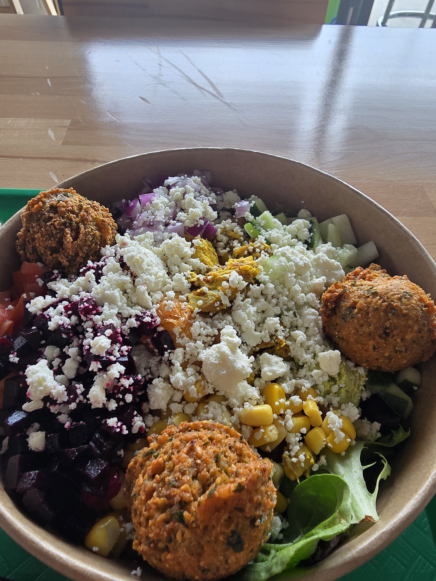 Read moreVery impressed with this place! The service was very friendly and informative, I tried a bowl and the combination options are endless. The veggies were all fresh, the hummus was very flavorful with about 5 different options. The lemon chicken and falafel were both delicious. They have quite a few drink options they do have soda but they also have various lemonades, a ginger turmic and even jalapeño cucumber. If you're thinking about checking it out stop...