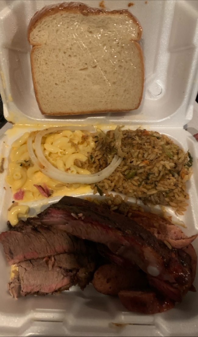 Ā Ā Ā Read moreThis is a reminder that for trying a new place to read the reviews. I noticed this place on my way to work and I decided to give it a try for lunch I went in and I ordered three meat dinner. This is a $20 plate of food, I asked for chicken ribs and links. The lady at the counter replied we donāt mix chicken I think no maāam I donāt want mixed. I would like that to be one of my three meats she said we donāt mix chicken. Not really understanding what she was telling me or I wasnāt understand maybe she wasnāt understanding what I was ordering so a third time I said no maāam I was just like to have chicken ribs and links again she replied I said we donāt mix chicken it as a whole or half. But this time I just decided to take chicken out of the order I still didnāt understand why but then I looked up at the menu again because this is my first time here and I see that they had four meats listed and I assume those are the meats that they only allow on this dinner I didnāt know this so then I ordered ribs beef and links. I got potato salad and asked for baked beans and $20 later the ribs were hot and cold. When you eat them barbecue you really donāt expect them to warm up the barbecue it should already be hot you would think, but this was hot and cold Like it came out of refrigerator tried to warm it up THE dry and one ruler anytime you get ribs and they have drowned the ribs and a barbecue sauce they trying to hide something however this barbecue sauce has no flavor at all. It was hard to write higher than one because the customer service was bad and then the food was cold not only was the ribs cold, but so was the brisket , so they did a bad job of warming this up potato salad was decent. Iāve tasted this type of potato salad before I think this is more of a bowl potato salad, not something is made in house. The baked beans was simply pork and beans poured out of the can thereās absolutely no barbecue sauce in these baked beans. Itās just pork and beans. I should have known when one of the customers inside the location was asking me if I had tried another location Iām sorry another barbecue place and tell me how much more food you get at the other place versus what I was paying for it really didnāt matter how much food I got, but what did matter to me was that I got tasty food so this was a epic failure is my fault and I caution you to please read the reviews thereās another review to talk about the food being cold and I concur. The food was cold dry flavorful it was not worth $20 very disappointed with hungry, farmers barbecue I tried it, I donāt like it. Iām not a return a repeat customer for them but I hope they do reach their target audience. Itās just not...