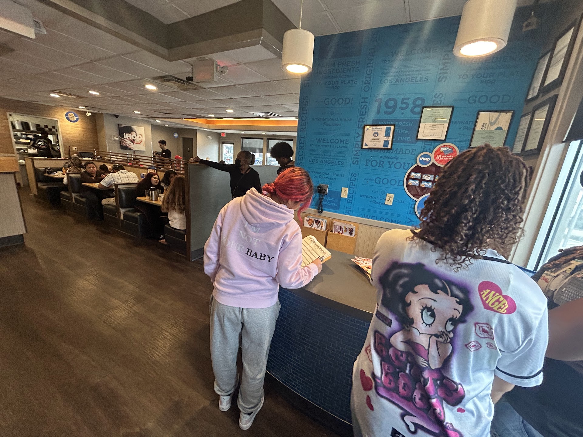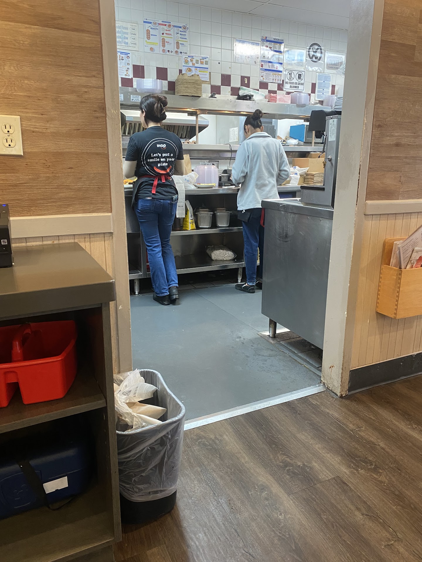 September 15. 2016 I absolutely hated my experience at this Ihop. I will take a longer drive to go to a different Ihop. 1. I called my order in, and the lady rushed me off of the phone. 2. When I got there, the place smelled like ass...feet...funky carpet and the lady that rushed me off of the phone GOT MY ORDER WRONG. 3. Man that came in after me got his food before me, and she GOT HIS ORDER WRONG TOO. 4. The man asked for extra butter. I was sitting in front of the window in the waiting area and had a direct view of the kitchen. I observed the waitress walk in, pick up a scooper and dig out butter from out of a bucket that was sitting in a sink area. After she finished scooping the butter, she dropped the scooper back in bucket and walked off...the bucket was not covered. 5. While waiting for my order, I learned the waitress name. Not because I'd read her name tag, but because the manager that was in the kitchen yelled out her name while she was standing in the front of the restaurant ADRIANNAAAAAAAAAAAAAAAAAAAA!!!!! 6. Another couple was waiting for someone to pick up the bill. I witnessed the lady stand up and hold the bill up in the air. After being ignored, the lady began waving the bill around in the air. After continuing to be ignored, the lady walked towards the register area, sat the bill on the counter and walked out. I laughed of course because it made no sense. The restaurant was not crowded. 7..The waitress finally brought my order out after a 30 minute wait for a to go order. The waitress asked, "okay ma'am just let me know when you're ready for the check." I'm thinking, what the hell heffa, I have a frickin TO GO ORDER....WHY IN THE HELL WOULD I HAVE TO TELL YOU TO BRING THE DAMN CHECK . I was out done. If I would have walked out and told her I will be ready for the check on the next visit, she would be standing there looking stupid. So incompetent..DO NOT NOT...