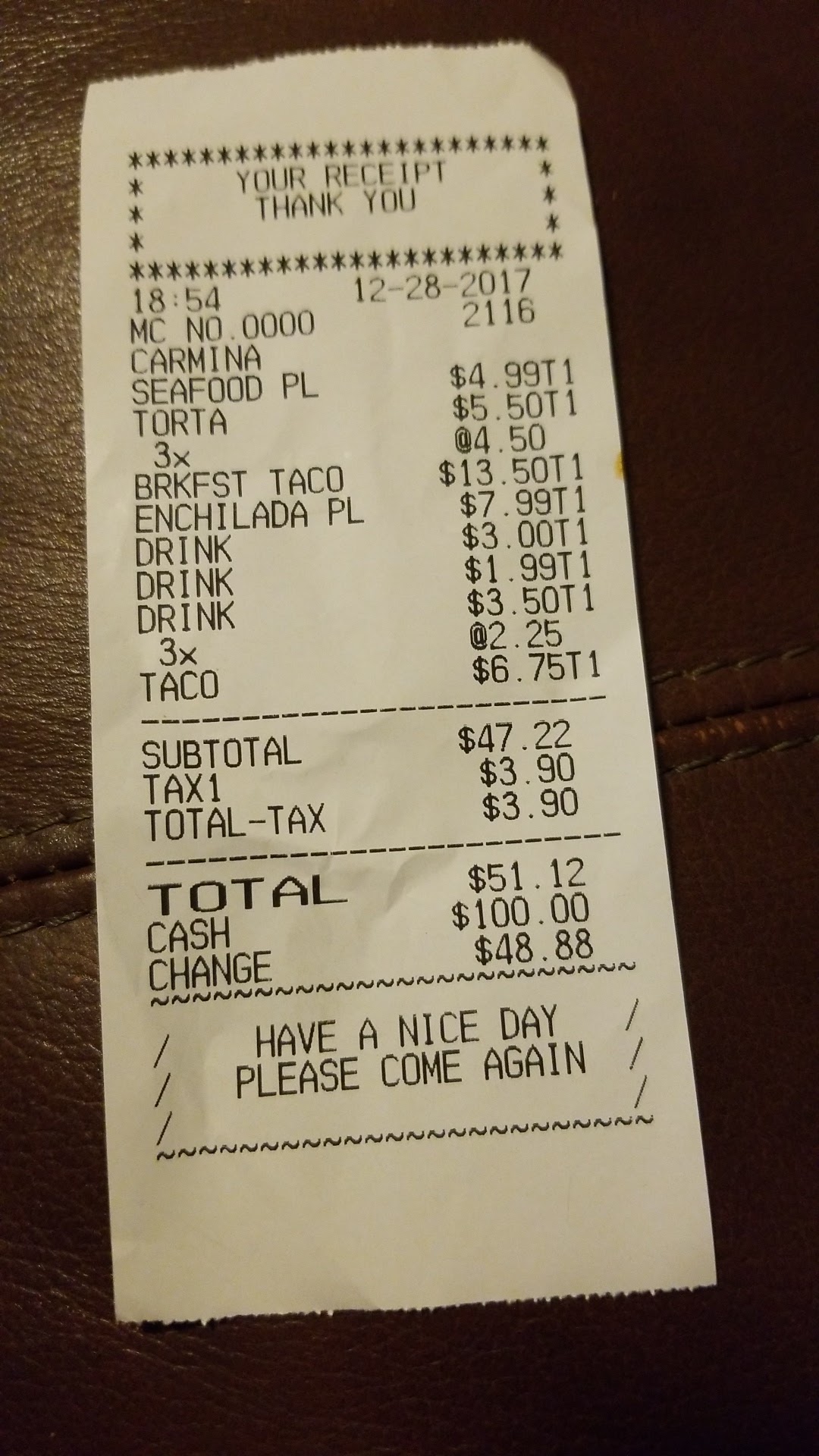 I wouldnāt knock it because those pork tacos were great. But definitely work on the customer service aspect and put napkin holders in your tables.