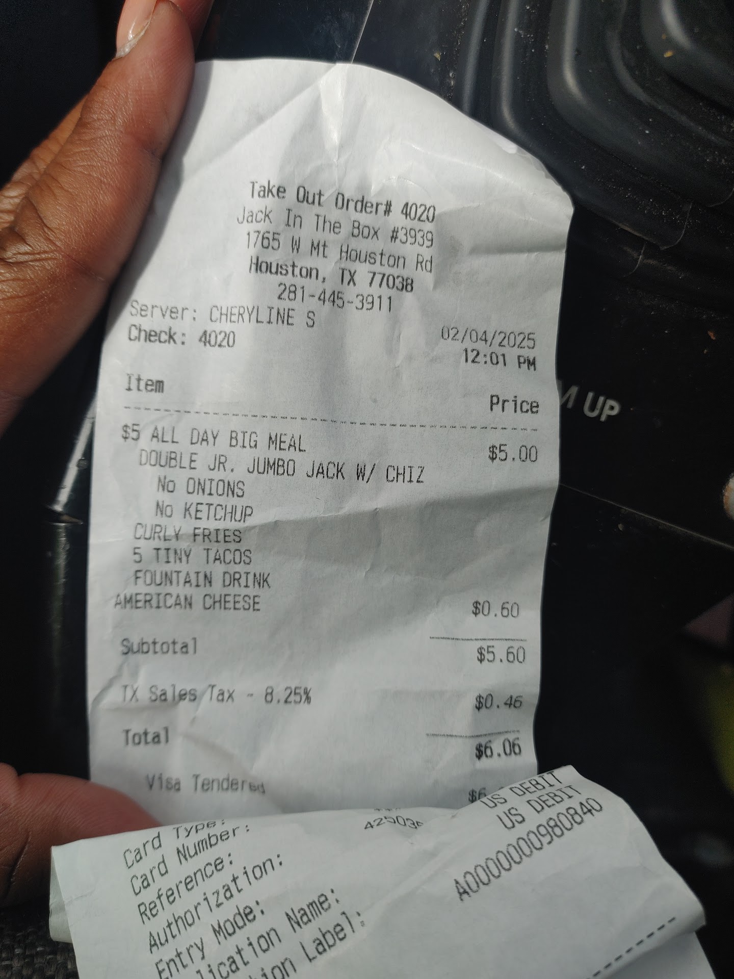 I was just at this store at 10pm tonight. May 29th 2024. I ordered 4 tacos. The girl at the register with braids had my card for a good while. I pulled up to see what she was doing, my card was laying in front of the register and she had her cell phone out taking a picture. I asked her did she just take a picture of my card, she said no upset. It was obvious I saw her, a red Card popped up in her pictures. Whatâs red, my card. The manager came over trying to check me. Not even verified what I said. I told him just give me my card and Iâll call corporate. He was talking loud and crazy also. As I drove off he claimed I didnât pay for my food, but obviously I received a notification of a swipe at Jack in the box. So itâs obvious she swiped it and taking a picture. #1 no employee should have their cell phones out at work, at the cash register, while making transactions with other peopleâs money. Maybe her and the manager are in cahoots with each other. He never once told her anything. I will be calling corporate and my bank. My proof that she did swipe my card. I did pay. And the manager was hollering I didnât as...