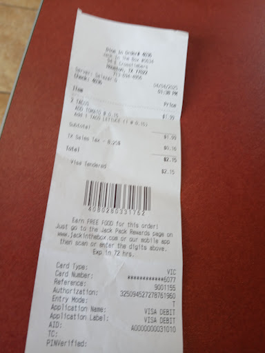 I usually visit this location between the hours of 12 a.m. & 4 a.m. of course, it's not the best time to be out and about no matter what part of Houston you're in. Immediately upon arriving and pulling into the drive thru, there are several homeless men begging and asking for whatever you can give them. Some are as specific as asking for exact change, orange juice, or whatever. I'm getting off subject, LOL, but... They approach your vehicle, ask for this or that, then walk away and go on down to every car in line. Some aren't so quick to move on and are very persistent and extremely rude. Needless to say, this makes your visit very uncomfortable and actually quite frightening at times. That's the first major issue, and then you have the employees that work the drive thru. I can't think of one employee there who has a personality. They aren't friendly to speak of as a matter of fact. They all act like they hate their jobs... I didn't make them get that job, and I'm definitely not apologizing for coming to their restaurant and disturbing their night/morning... it's their job!!! If you hate it that much, go work somewhere else. However, there are a few hard-working and friendly employees there, but they're few and far between. I can't recall one visit that they actually got our order correct or all items being in our bag. It can be as much as a sandwich missing, fries, and/or condiments, napkins, etc... and because we get there so late and we're both tired, we don't always check the bag thoroughly, and we don't always check it while we're still in their parking lot. So.... when we get home and get inside, we realize stuff is missing or not made properly, and of course, we don't ever go back or call or anything because we don't want the hassle nor do we want to be complainers. It's partially our own fault for not looking while we were still nearby, but.... really now, seriously, we shouldn't have to check at all. Our orders should be accurate at least 90% of the time, I realize we are all humans, and we all make mistakes, but, golly, we can't even get 10% accuracy ๐๐ซ๐ซค The quality of the food is poor, it's not very fresh and seldom is our food actually hot and the fountain drinks always taste odd they never taste like they're supposed to... makes you wonder why ๐ค๐ซฃ๐คญ Maybe it's just this shift that sucks I don't know, but don't go in the wee morning...