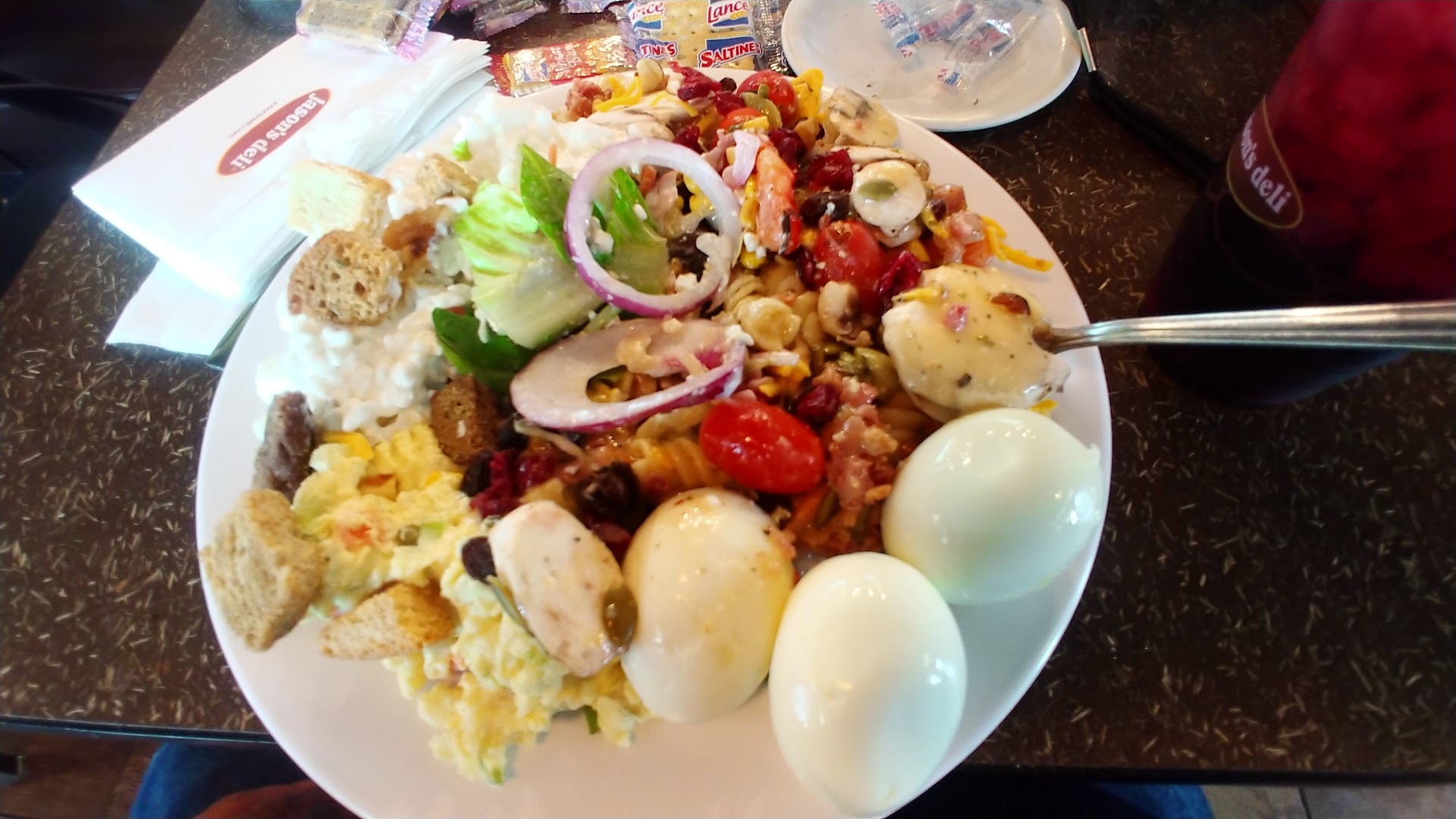 Read moreMy SLANT on this Jason's Deli. I ordered a Rueben Sandwich which is "advertised" as coming with Russian Dressing. You've heard of Russian Dressing right? Everyone has except the manager of this Jason's. They brought a sandwich with Thousand Island dressing. When I advised him of the mistake, he told me, "Thousand Island dressing is their SLANT on Russian dressing". Slant????? In the course of our 'discussion' he told me that me about their SLNAT on Russian dressing at least four times. It was though i was finally going to realize that thousand Island dressing is actually okay on a sandwich that is supposed to have Russian dressing. Despite his 16 years as manager at this site (talk about stuck in a job!) I advised him to go to any grocery store and look for RUSSIAN DRESSING! Recommendation: If you want a Rueben with Russian Dressing, go to the Jason's in Sugarland. This manager is clueless and his attempt to buy my silence with tgwo cookies...
