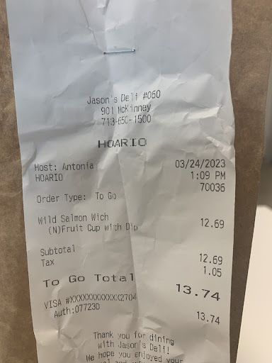Read moreVery disappointed with the staff and management Julisa. I ordered (1:09pm) the Salmon sandwich ONLY and the staff missed preparing my order. It was exactly 1:19pm when I walked up to ask Julisa to check on my order and she look around and did not find the prepared order. She found the order ticket still hanging from the waiting to be completed area and walked over to one of the staff and handed that person the ticket order and that person started to prepare my order. She then went back to her duties but failed to get back to me to tell me that the order was missed. I went back to Julisa for the second time to ask her did they miss my order? Is it going to be much longer? She said yes they did miss your order but they are working on on it now. At exactly 1:25pm my order was handed to me by one of the staff. I told Julisa that I was disappointed with the service and I asked for a comment card. She said I can comment online. Julisa NEVER apologize for the inconvenience or offered anything for the mistake. The staff were 4 or 5 ladies in the staff preparing sandwiches not busy. They were just laughing and communicating with each other. VERY DISAPPOINTED with the experience I had with this store staff! I originally went in looking for directions to another restaurant and Julisa was helpful but I decided to order...
