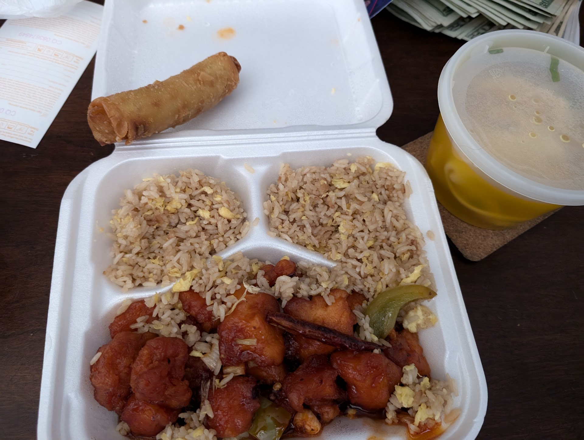 I really enjoy their hot and sour soup and beef lo mein, and I tried the chicken pad thai for the first time today and it was delicious. The pan fried dumplings were so good. They were lightly crisped, not greasy, and had a fresh homemade taste and texture. I also love their cheese puffs. My husband always gets the egg drop soup and swears their hot mustard is the best. It clears his sinuses and has him nearly in tears every time, and I love watching his face turn bright red.