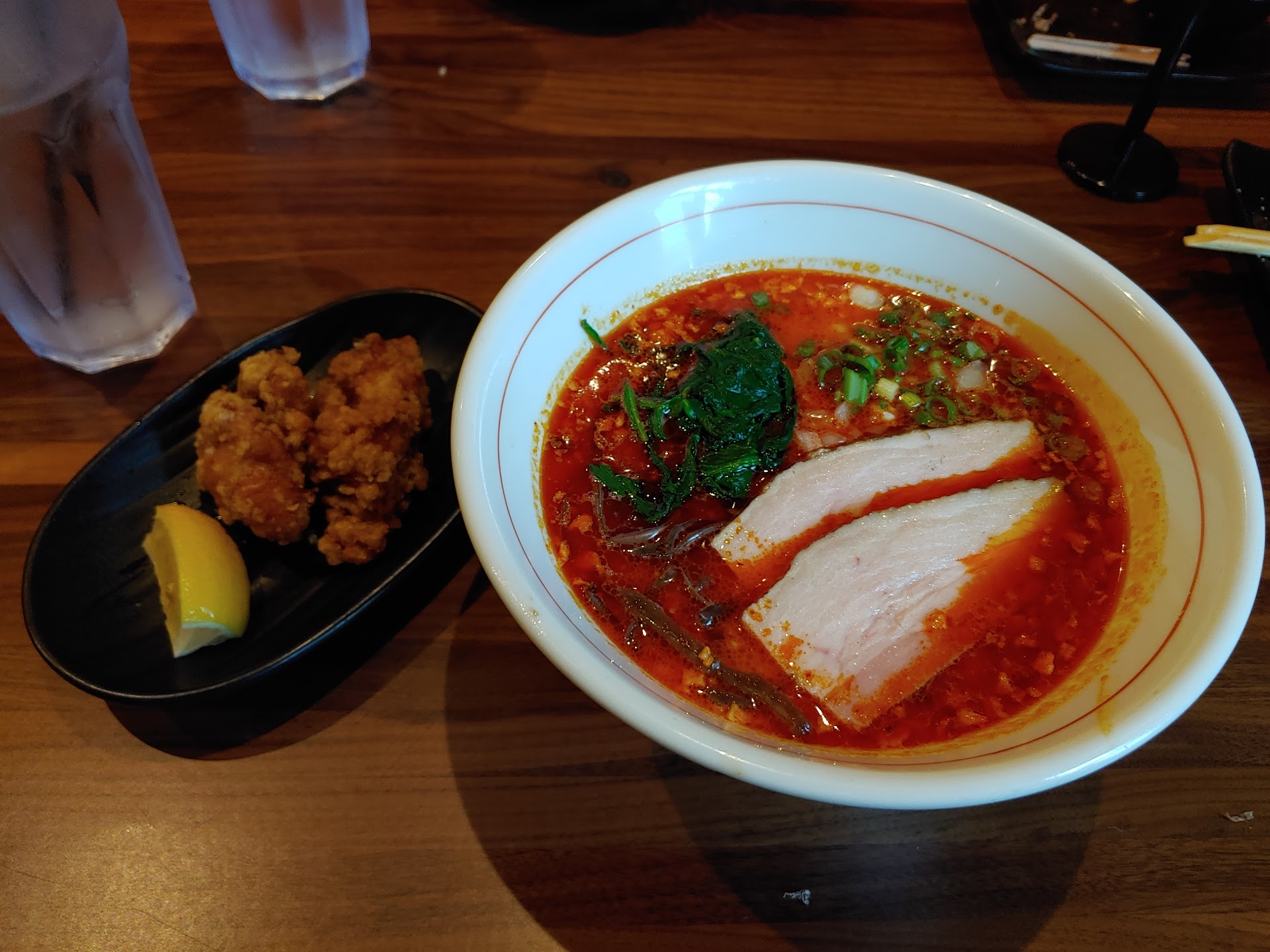 The red garnet ramen combo ($15) came with the bowl and ramen and a side of crispy thigh pieces.