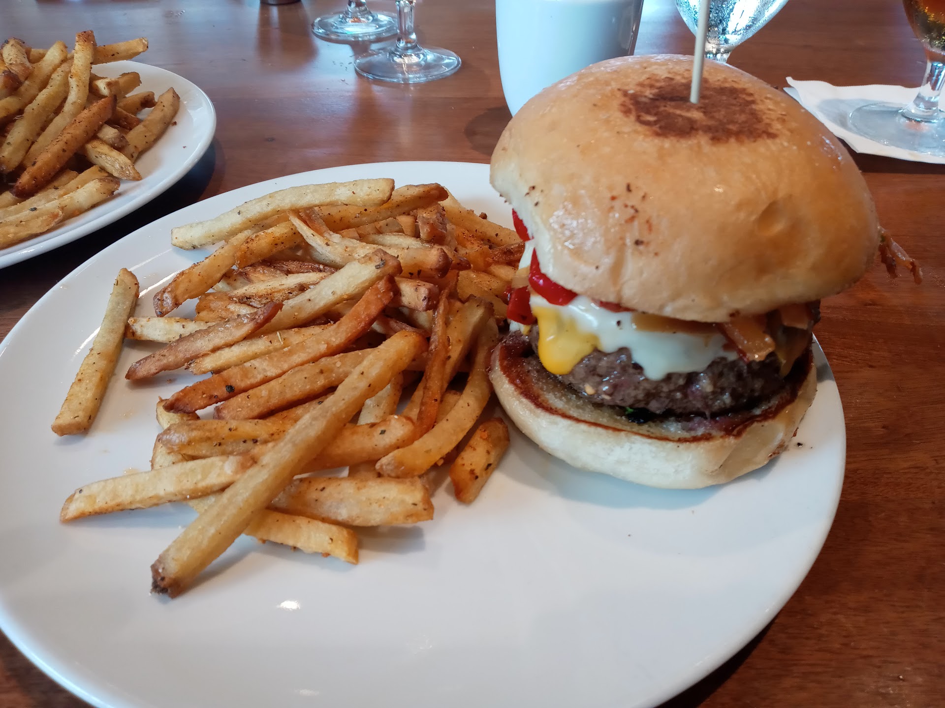 Weâve been getting burgers as takeout throughout the pandemic, but last night was the first time we dined in. The place was popping on a Saturday night at 8pm. The four of us, including friends visiting from New Orleans, sat outside.