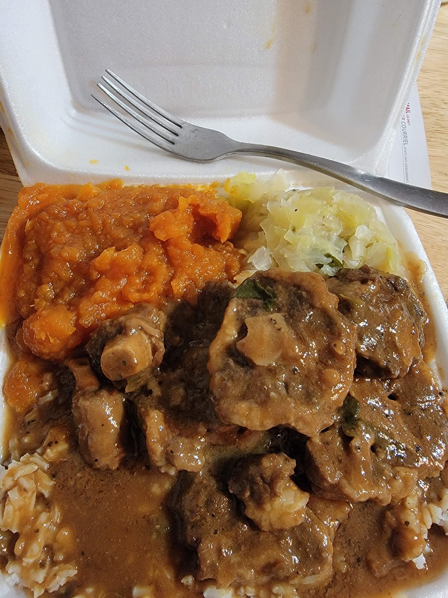 Read moreWhere do I begin? I wanted a tasty Sunday meal. To be totally honest, I ended up here because the meat market I like closed while I was inside (with no food left). Someone that was leaving asked if I had been to Just Oxtails. I had heard about it on the radio, but never been. I swooped around the corner within minutes to find 4 people in line. Tell me why it took 45 minutes to leave this place? What I witnessed was like something you've never seen before. No lie...The servers moved like they were given tranquilizers or sleeping pills. The lady serving the ox tails kept scooping them up and putting them back (repeatedly) before deciding to put them in the to go container??? Then, she went to the kitchen twice to get more oxtails when there were clearly already oxtails still in the pan that she kept taking to the kitchen??? The second time she left, she was gone for at least 7 minutes (which seemed like an eternity), even though we were told there were plenty of oxtails, ready to serve.