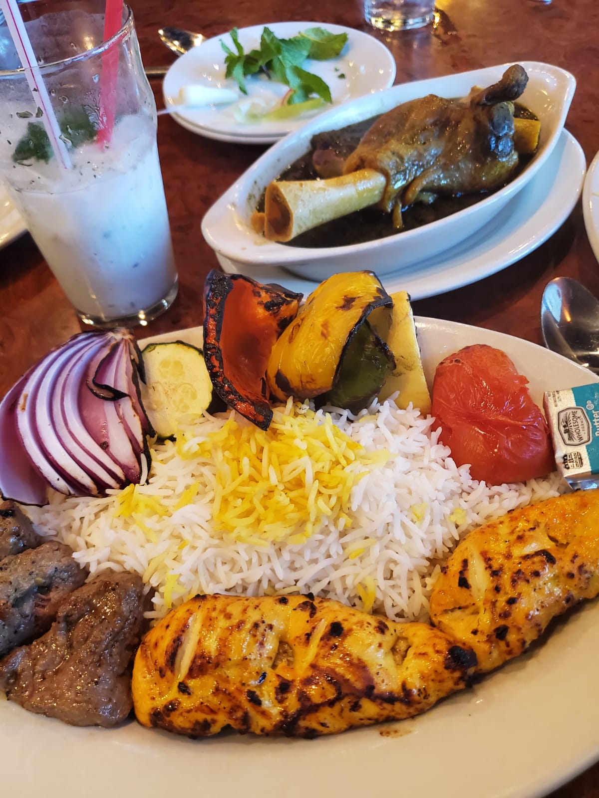 Chenjeh Sultani and a half order of Chicken Barg. Let me introduce you to my new soul mate. Letâs start with the Chenjeh Sultani. You have a foundation of expertly prepared rice. Long grain and slightly nutty. Two delicious grilled tomatoes were also included. There was one skewer of Kubideh which in this case was flawlessly seasoned and melt in your mouth moist. The second skewer is sealed the feelings of pure love in every tasty bite⊠Chenjeh which is marinated chunks of the most epically delicious, tender beef fillet. Oh my God it was purrrrfection. Lastly I also ordered the Chicken Barg which was juicy and had sophistication in every bite.