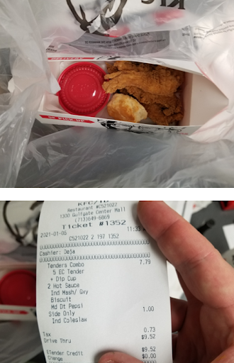 Read moreI recently went to this KFC and had a terrible experience. I order my food and the person taking the order was having different conversations in the background while taking my order, to which it wasn’t even the right order. As well, didn’t repeat back my order and instead told me to put up to the window right away. When I pull to the window they ask me what I order and told them my order. Which they were confused about my order being different. They charge me for the Order I wanted and to where they charged me way more than it should have because I checked the prices of the order and clearly told them what I order and was charged for something I didn’t received. I didn’t bother going back to get back my missing food and they didn’t even give me my receipt. To which I had to check my bank account to see how much I spent and it was a lot than it should have. Slow service and long lines. Never going back to this KFC location again. Hope anyone that reading this, please stay away from...