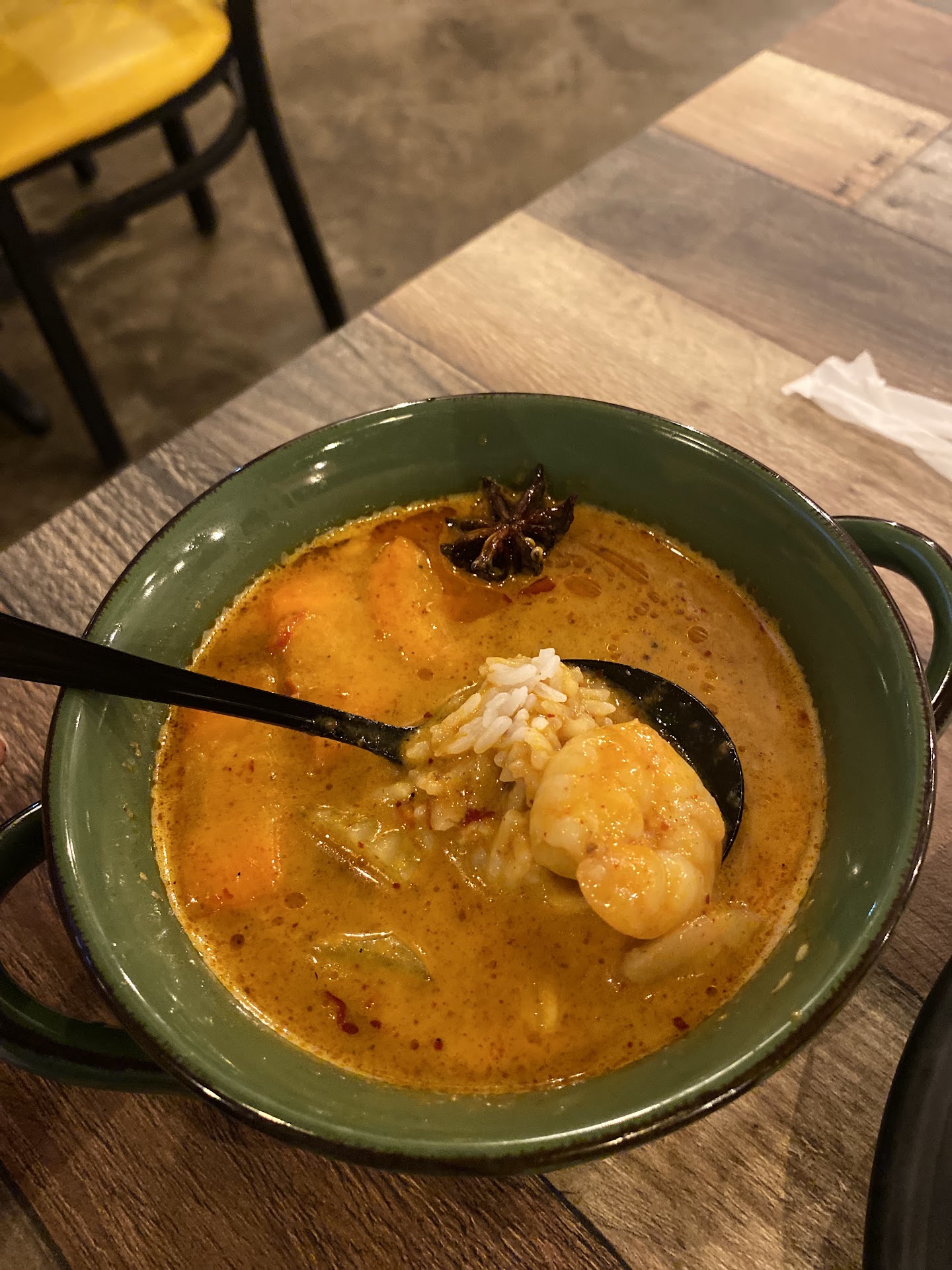 Next, we warmed our souls with the Po Tak. This isn't your average hot and sour soup. The broth was a masterpiece of aromatics, bursting with the fragrance of lemongrass, galangal, and kaffir lime leaves. It was generously filled with plump shrimp, tender squid, and succulent mussels. The flavor was clean, fiery, and deeply comforting—a true taste of the Thai seaside.