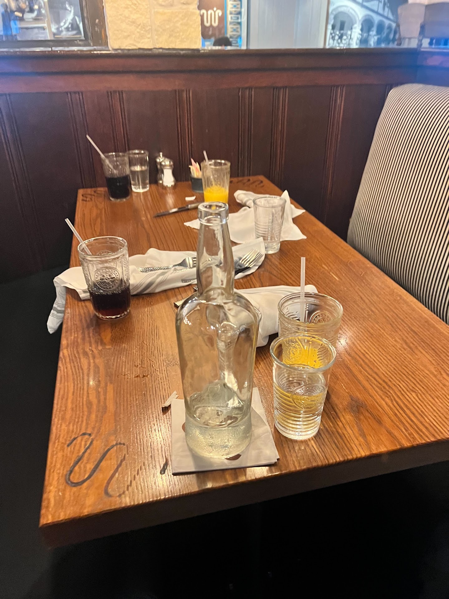 When we walked in, i noticed a four top walking out from the bar area, and in the taxidermy room, I noticed there was a table that hadn't been bussed yet as we were being shown to our table. As I walked around with my fussy 18 month old, I watched the woman finish her meeting and leave as well as the three top finish their meal and depart.