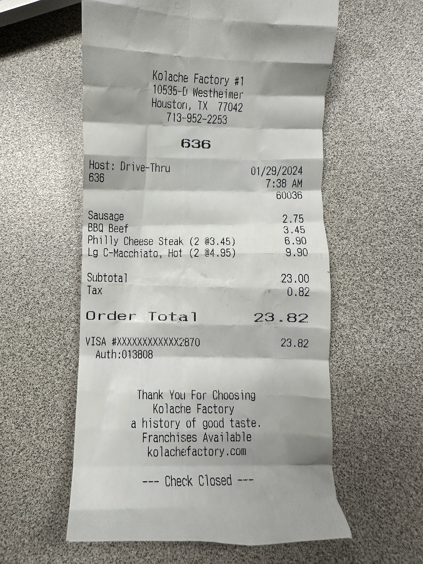 The correct order was written on the bag, but on the receipt, it shows âSausageâ instead of âSmoked beefâ Since iâve waited for almost 10min for my drink, I really didnât check the bag to make sure the order in the bag was correct, I was rushing cuz I did got to work late. Only for me to get to work and found out, there was only 3 kolaches in the bag. They only didnât get my order wrong, I was also short on my order. If it wasnât done my mistake or because they werenât listening to me or pay attention, then itâs THEFT!!! Iâm already at work LATE, found out my order was wrong or short, how do I drive 25-30min back to get fixed? I got so pissed off and just threw every damn thing in the trashâŚ. And Iâll make sure I share this experience with all my family and friends. One less of a customer wonât hurt yâall, but I do trust and believe in God, heâll be the judge if I was wrong to spend my money at this place and got treated this way. Ainât no way Iâll ever spend a dime at Kolache factory, enough is...