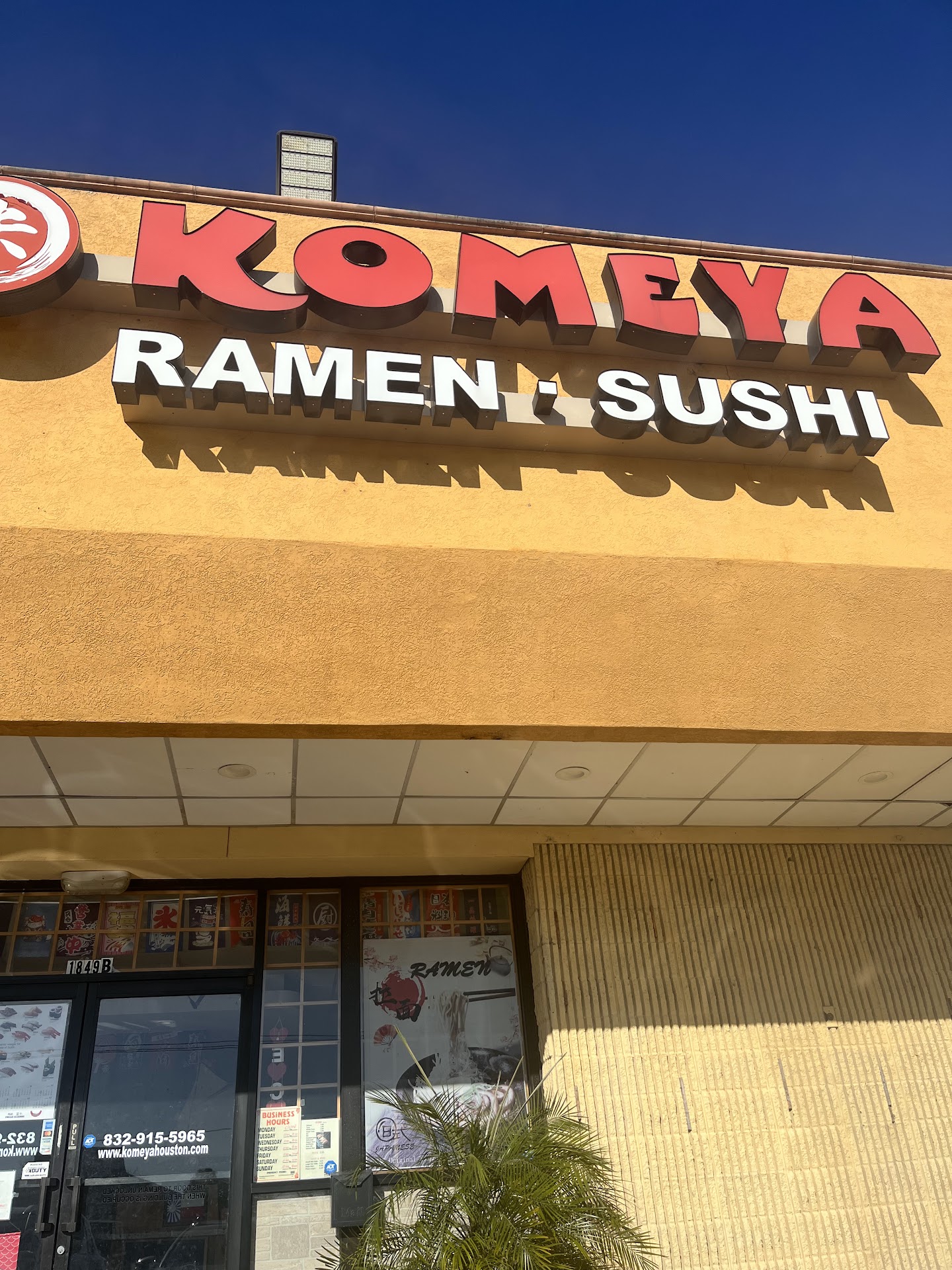 Read moreWe decided to try Komeya on a Friday night for dinner. We arrived at 6:00PM and were surprised to find the restaurant almost empty. From the outside, it doesn’t look like much. The inside though is very well decorated and is very cozy. It isn’t a very large space, but they have arranged it well. The owner, who we met, is a very nice man. We were quickly seated and asked if we wanted something to drink. My wife ordered a Pepsi, but they were out of it that evening. We both had water. Our waiter was very, very bad. He seemed very interested in the only other table which had two girls at it. We were pretty sure he was hitting on them. There were two other waitresses there on the evening shift and they seemed to do most of his work for him. As we sat, several other tables came in. I suppose their rush starts closer to 6:30. We ordered spring rolls and a seaweed salad to start. The spring rolls were very good. I would say they were more like egg rolls in that they were larger than ones I have had in the past. The seaweed salad was very crisp and fresh. Again, both were very good. Our waiter finally made it back to us and took our dinner order. My wife got the original tonkotsu ramen and we ordered a few sushi rolls for the table: shaggy dog roll, Philadelphia roll, and the volcano roll. He disappeared for a while and soon after, one of the waitresses brought us the first roll. When the waiter came back, he brought us plates, one of which had dried food stuck to it. How gross! He should be checking these things. We had to ask one of the waitresses to please bring us another plate. The ramen and other rolls came out soon after this. The ramen was awful. In our opinion, it was completely inedible. Words cannot describe the soapy taste of it or the putrid smell. We had to wait for the waiter to come back to ask him to take it away from the table. In the process, he came and brought me a different bowl of ramen that I did not even order. That was also awful and got sent back. The sushi, however, was excellent. The Philadelphia roll was very fresh with nice pieces of salmon in it. I highly recommend this. The shaggy dog roll was missing the usual crunch on the outside that I am used to, but had a very good flavor. I would reorder it. The volcano roll was very, very nice. It is a baked roll and was a nice portion. The only complaint about it was that the eel sauce was a little more fishy than expected. That being said, we ate the whole thing. Overall, I have to give this place 3 out of 5 stars. I had to deduct 1 star for the poor wait staff. Even though there were three of them on the small floor, we still found ourselves waiting and trying to find one of them. The waiter in particular needs to step up his game. We deducted the second star for the horrific ramen. If you are going to advertise yourself as a ramen bar, make sure you can produce a good ramen first. We will definitely go back for the sushi, but will steer way clear of the...