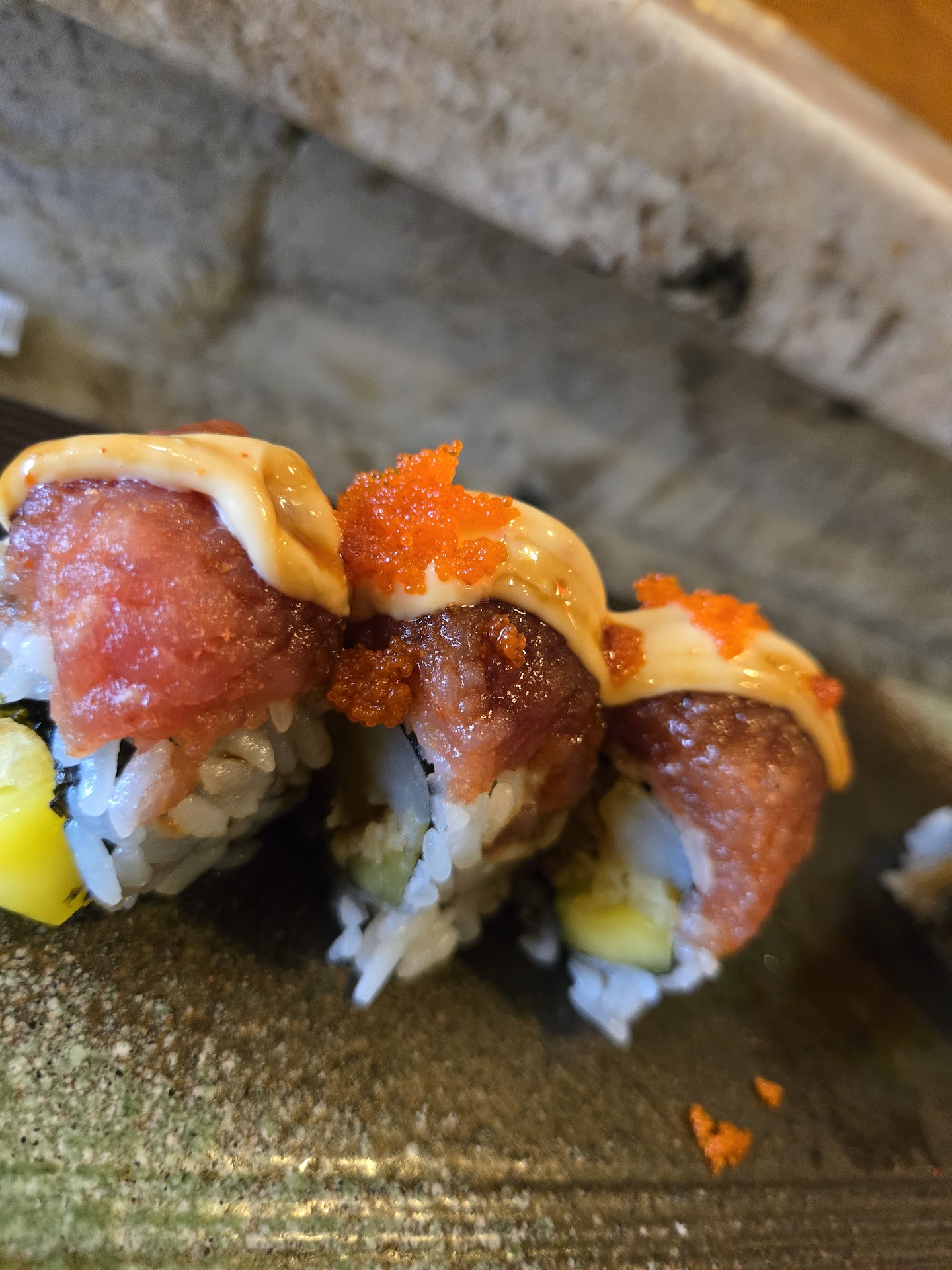 A little bit later, she came back looking very sheepish, and informed us that the sushi chef has refused to make the roll for us and she doesn't know why. She looked very flustered as to why the sushi chef won't make the roll for us. In between that moment and now, as I write this review, I can't even think of a reason why the roll wasn't made.
