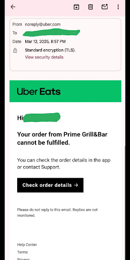 Update to Response: I appreciate the response, but I want to clarify what actually happened. Uber Eats emailed me at 8:57 PM stating that the restaurant could not fulfill my order and had canceled it. This directly contradicts the claim that a courier picked up my order at 8:32 PM. If my order had been picked up, Uber Eats would not have canceled it due to the restaurant being unable to fulfill it. I am sharing the Uber Eats email screenshot here for transparency.